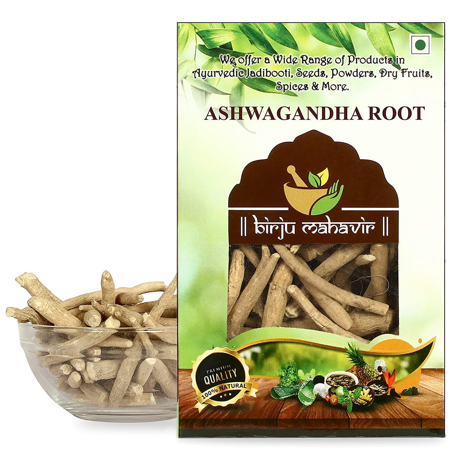 We at Birju Mahavir, with a legacy of almost a century help preserve the age-old tradition of Ayurveda and are on a mission to deliver authentic and original Ayurveda to every home. Operating since 1928, we maintain a collection of even the rarest herbs, and supply 100 natural Ayurvedic products pan India under our brands Birju Mahavir and BrijBooti.100 vegetarian, no artificial color, no side effect. It helps improve immunity. It helps reduce inflammation. It helps to increase muscle mass and strength. 100 pure and natural.BIRJU MAHAVIR Ashwagandha Wortel Withania Somnifera (100 g), Natuurlijk (BMKB-300) Wij bij Birju Mahavir, met een erfenis van bijna een eeuw helpen de eeuwenlange traditie van Ayurveda te behouden en hebben een missie om authentieke en originele Ayurveda in elk huis te leveren. Operationeel sinds 1928, onderhouden we een verzameling van zelfs de zeldzaamste kruiden, en leveren we 100 natuurlijke ayurvedische producten pan India onder ons merk Birju Mahavir en BrijBooti.100 vegetarisch, geen kunstmatige kleur, geen bijwerking. Het helpt de immuniteit te verbeteren. Het helpt ontstekingen te verminderen. Het helpt om spiermassa en kracht te vergroten. 100 zuiver en natuurlijk.