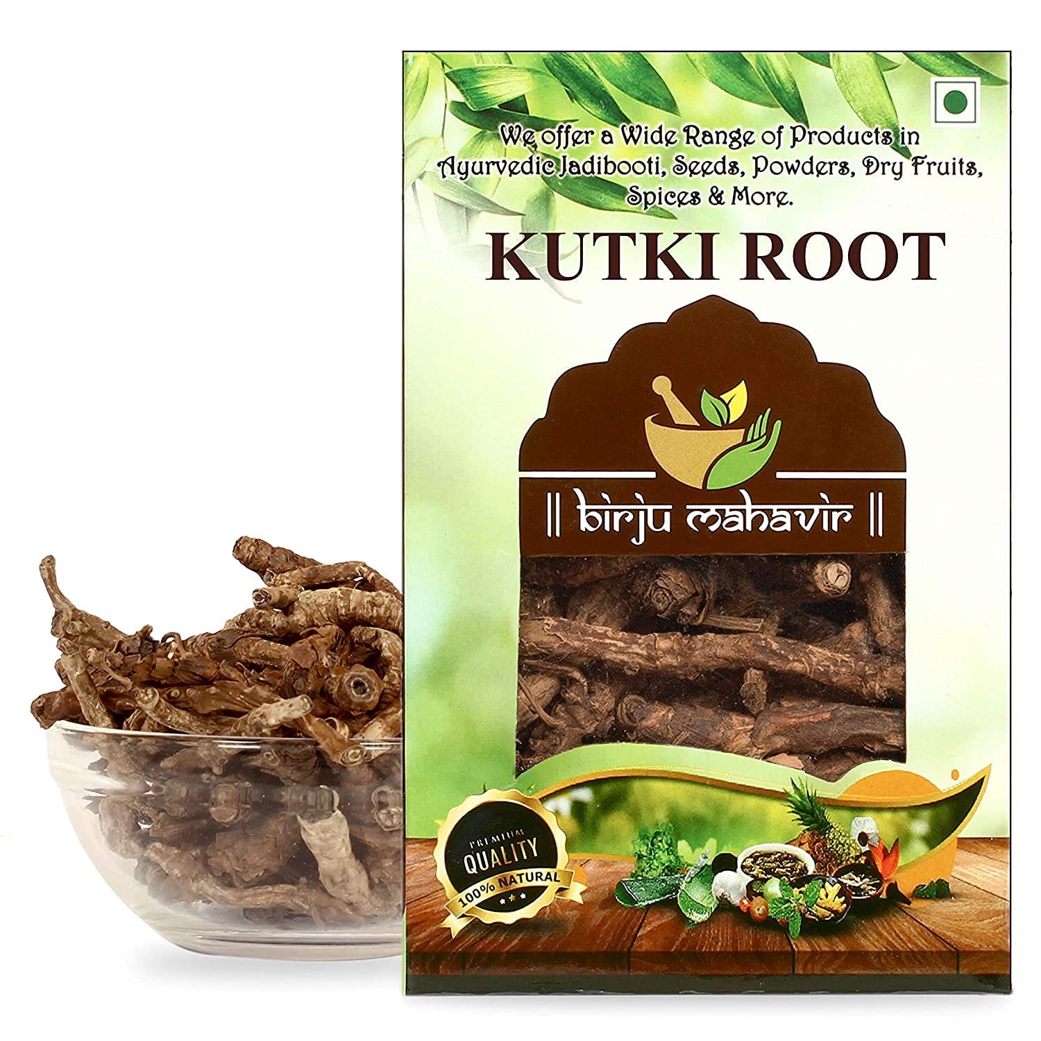 We at Birju Mahavir, with a legacy of almost a century help preserve the age-old tradition of Ayurveda and are on a mission to deliver authentic and original Ayurveda to every home. Operating since 1928, we maintain a collection of even the rarest herbs, and supply 100 natural Ayurvedic products pan India under our brands Birju Mahavir and BrijBooti.Herbal antibiotic. Detoxifies the liver, blood and gastrointestinal tract. Useful in weight loss therapy. Strengthens the liver, Balances hormones.Birju Mahavir Kutki - Katuki - Katuka - Picrorrhiza Kurrora 100 Gr, Naturel (BMKB-26) Wij bij Birju Mahavir, met een erfenis van bijna een eeuw helpen de eeuwenlange traditie van Ayurveda te behouden en hebben een missie om authentieke en originele Ayurveda in elk huis te leveren. Operationeel sinds 1928, onderhouden we een verzameling van zelfs de zeldzaamste kruiden, en leveren we 100 natuurlijke ayurvedische producten pan India onder ons merk Birju Mahavir en BrijBooti.Kruiden antibioticum. Ontgift de lever, het bloed en het maagdarmkanaal. Nuttig bij gewichtsverlies therapie. Versterkt de lever, Balanceert hormonen.