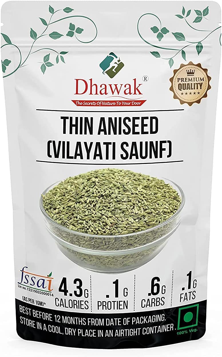 HAND PICKED HERBS WHERE THEY GROW BEST.PURE AND NATURAL. Dhawak - Nature's Secrets To Your Doorstep. Very beneficial in controlling acidity and pitta dosha. Soak overnight and drink strained water for detox. Popularly used as a mouth freshener and to flavor some curries.Dhawak Dunne Anijs (Lucknowi Vilayati Saunf) - 400 GMS. [Sortex Kwaliteit] HAND PICKED KRUIDEN WAAR ZE HET BESTE WORDEN GEGROEID.PUUR EN NATUURLIJK. Dhawak - De Geheimen Van De Natuur Naar Uw Deur. Zeer gunstig bij het beheersen van zuurgraad en pitta-dosha. Week een nacht en drink gespannen water voor detox. In de volksmond gebruikt als mondverfrisser en om wat curries op smaak te brengen.