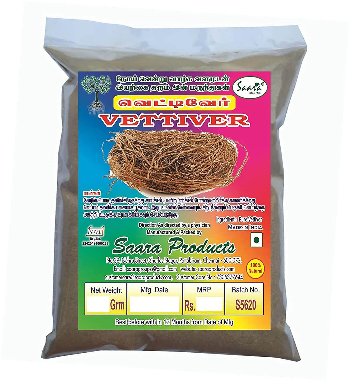 Wetenschappelijke naam: Vetiveria zizanioides, Hindi, Bengals: Khas, Khas-Khas, Khus-Khus, Khus Gujarati: Valo Marathi: Vala Telugu: Kuruveeru, Vettiveellu, Vettiveerum Kannada: Vattiveeru, Laamancha, Kaddu, Karidappasajje Hullu Mallu yalam: Rammen accham, Vettiveru, Lamajja, Ramacham Oriya: Ushira, Benachera Punjabi: Panni, Khas Tamil: Vetiver, Vilamichaver Telugu: Vetivelu, Vettiveru Urdu: Khas Ayurvedische naam: Ushira, Reshira, SugandhimulaHigh quality product. 100 dry - ready to use. No.1 Quality.N SAARA : Vetiver Roots Poeder 100g Wetenschappelijke naam: Vetiveria zizanioides, Hindi, Bengaals: Khas, Khas-Khas, Khus-Khus, Khus Gujarati: Valo Marathi: Vala Telugu: Kuruveeru, Vettiveellu, Vettiveerum Kannada: Vattiveeru, Laamancha, Kaddu, Karidappasajje Hullu Mallu yalam: Rammen accham, Vettiveru, Lamajja, Ramacham Oriya: Ushira, Benachera Punjabi: Panni, Khas Tamil: Vetiver, Vilamichaver Telugu: Vetivelu, Vettiveru Urdu: Khas Ayurvedische naam: Ushira, Reshira, SugandhimulaProduct van hoogwaardige kwaliteit. 100 droog - klaar voor gebruik. No.1 Kwaliteit.