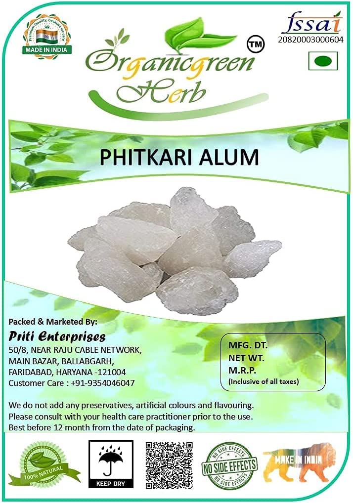 ORGANIZE Organic Green Herb Phitkari Alum Stone 1 kg 1000 GMS Skin Shaving Face Fitkari Phitkari Phitakri