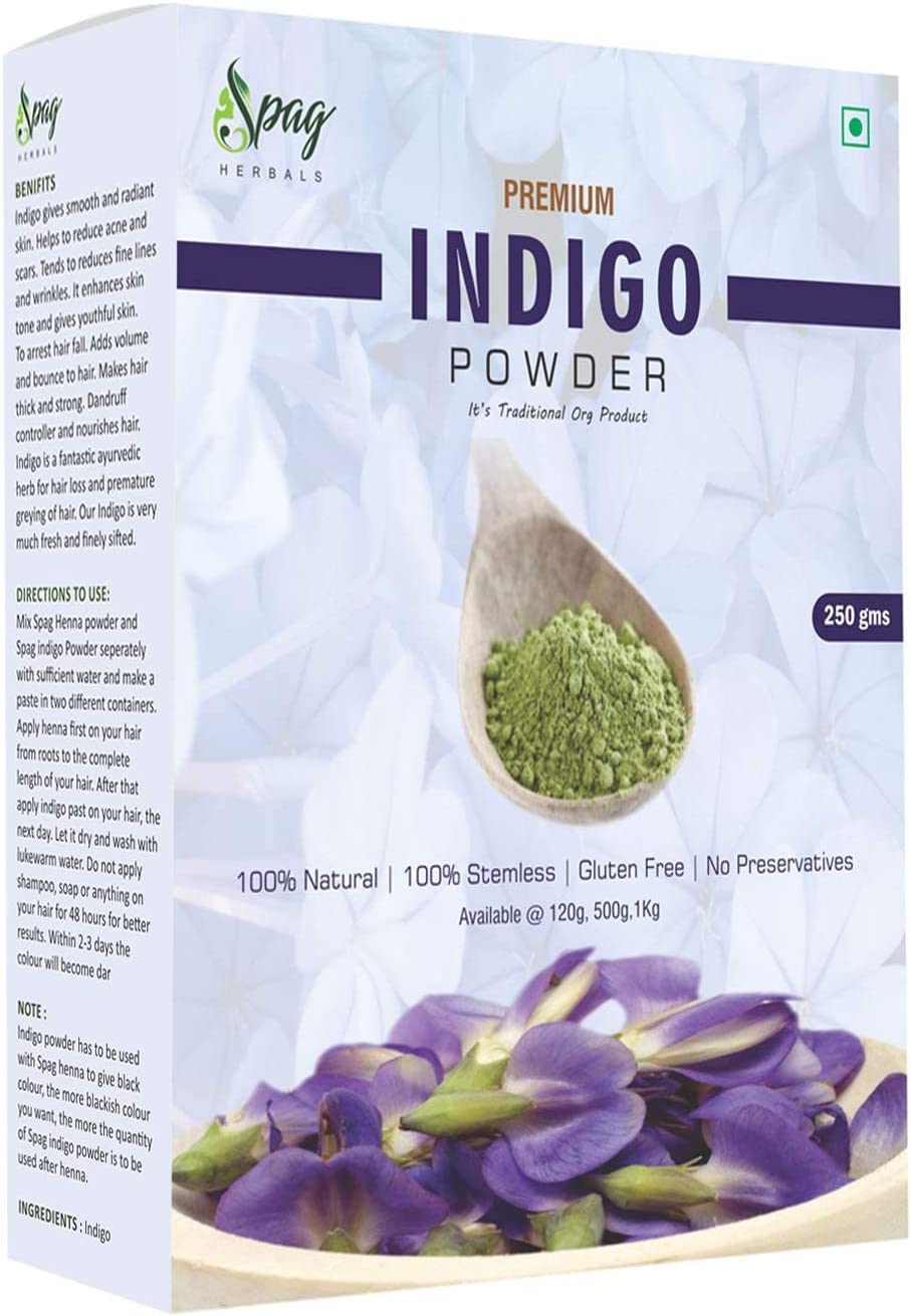 Indigo gives smooth and radiant skin. Helps reduce acne and scars. Tends to reduce fine lines and wrinkles. It improves skin color and gives youthful skin. To arrest hair fall. Adds volume and bounce to hair. Makes hair thick and strong. Rose controller and nourishes her. Indigo is a fantastic Ayurvedic herb for hair loss and premature graying of hair. Our Indigo is very fresh and finely sieved. Instructions for use Mix Spag Henna powder and Spag indigo Powder separately with sufficient water and make a paste in two different containers. First apply henna to your hair from the roots to the entire length of your hair. Then apply indigo past to your hair the next day. Let it dry and wash with lukewarm water. Do not apply shampoo, soap or anything on your hair for 48 hours for better results. The color will darken within 2-3 days.Indigo gives smooth and radiant skin. Helps reduce acne and scars. Tends to reduce fine lines and wrinkles. It improves skin color and gives youthful skin. To arrest hair fall. Adds volume and bounce to hair. Makes hair thick and strong. Rose controller and nourishes her. Indigo is a fantastic Ayurvedic herb for hair loss and premature graying of hair. Our Indigo is very fresh and finely sieved. Easy to use. Organic for her. 100 Natural and effective herbal product.Spag Herbals Premium Biologisch Indigo Poeder 120g Indigo geeft een gladde en stralende huid. Helpt acne en littekens te verminderen. Heeft de neiging om fijne lijntjes en rimpels te verminderen. Het verbetert de huidskleur en geeft een jeugdige huid. Om haarval te arresteren. Voegt volume toe en stuitert aan haar. Maakt haar dik en sterk. Roos controller en voedt haar. Indigo is een fantastisch ayurvedisch kruid voor haaruitval en vroegtijdige vergrijzing van haar. Onze Indigo is erg vers en fijn gezeefd. Gebruiksaanwijzing Meng Spag Henna poeder en Spag indigo Poeder apart met voldoende water en maak een pasta in twee verschillende containers. Breng henna eerst aan op je haar vanaf de wortels tot de volledige lengte van je haar. Breng daarna indigo verleden op je haar aan, de volgende dag. Laat het drogen en was met lauw water. Breng gedurende 48 uur geen shampoo, zeep of iets op je haar aan voor betere resultaten. Binnen 2-3 dagen wordt de kleur donker.Indigo geeft een gladde en stralende huid. Helpt acne en littekens te verminderen. Heeft de neiging om fijne lijntjes en rimpels te verminderen. Het verbetert de huidskleur en geeft een jeugdige huid. Om haarval te arresteren. Voegt volume toe en stuitert aan haar. Maakt haar dik en sterk. Roos controller en voedt haar. Indigo is een fantastisch ayurvedisch kruid voor haaruitval en vroegtijdige vergrijzing van haar. Onze Indigo is erg vers en fijn gezeefd. Eenvoudig te gebruiken. Voor haar organisch. 100 Natuurlijk en effectief kruidenproduct.