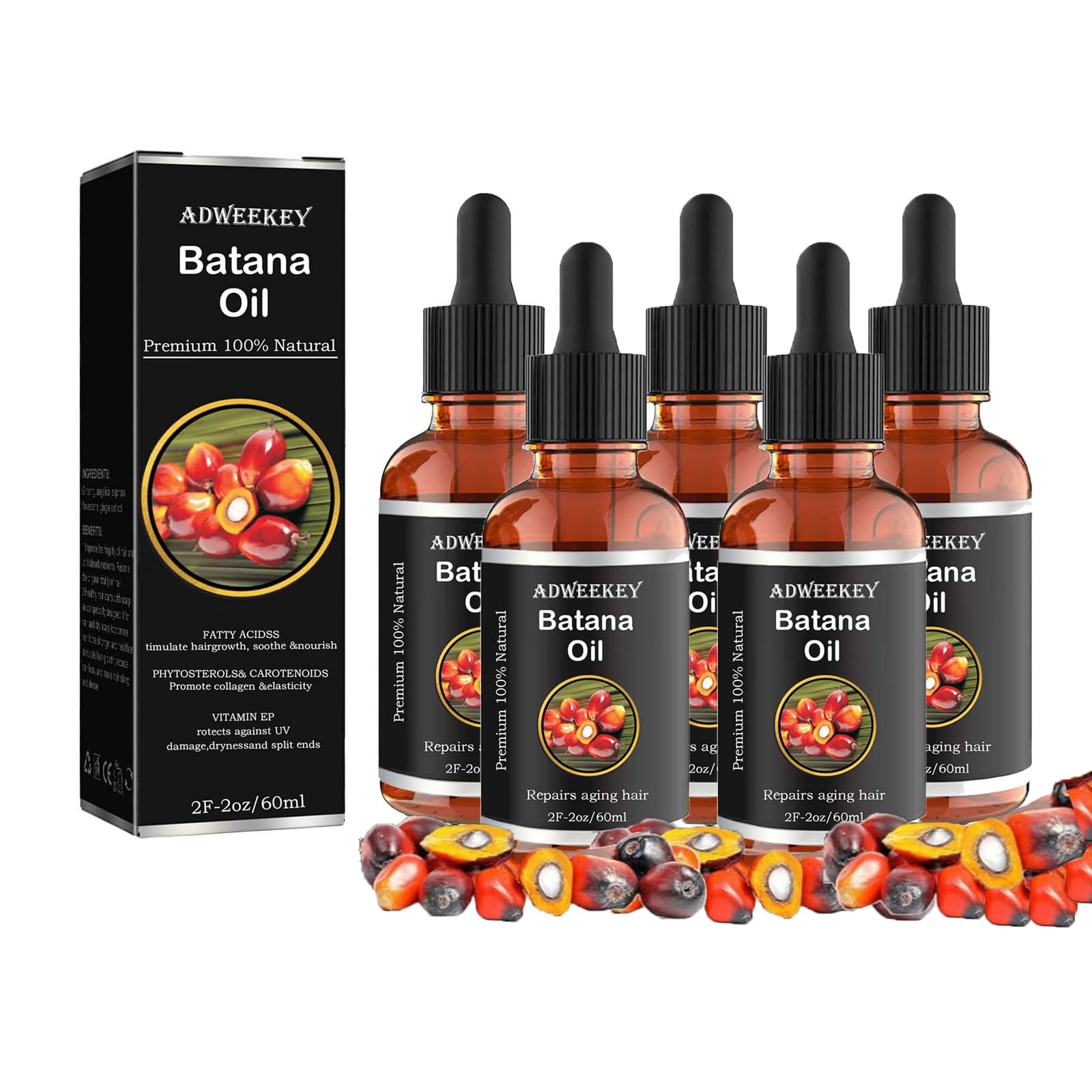 Features: ? It contains no harmful chemicals and is safe and effective for all hair types. ? Batana Oil for Hair Growth: Our unique method is designed to nourish your hair from root to tip, promoting healthy growth and preventing damage. ? Improves Hair: Batana oil can improve hair health and enhance shine, giving you a natural, youthful glow. ? How to Use: Apply the oil to damp or dry hair, focusing on the ends to increase moisture, or use it as a conditioner to boost shine. ? Suitable for Everyone: Batana oil has a light effect, a pleasant aroma, and is easy to use. It fits perfectly into daily life and is suitable for everyone. Package Contents: Pack of 5 bottles of organic batana oil. Note: 1. Due to differences in display and lighting, please refer to the actual product received. 2. Please allow for a 1-2 cm difference in size due to manual measurement. SAFETY WARNING NOSuitable for Everyone With its lightweight formula and pleasant fragrance, Batana Oil is easy to use and can be easily incorporated into your daily routine. It's a great gift for everyone. Improve Hair Batana Oil not only improves the quality of your hair but also enhances your skin's radiance, giving you a natural, youthful glow. Application: Apply Batana Oil to damp or dry hair, focusing on the ends for extra hydration, or use it as a conditioning treatment for added shine. Batana Oil for Hair Growth: Our unique formula is designed to nourish your hair from root to tip, promoting growth and preventing damage. 100 Organic Batana Oil: Batana Oil is a miracle in a bottle. This 100 natural oil from Honduras is cold-pressed and free of harmful chemicals, making it safe and effective for all hair types.Lot de 5 huiles de batana bio pour la croissance des cheveux, 100 bio Batana Oil Organic for Growth Hair, favorise le bien-être des cheveux chez les hommes et les femmes, améliore l'éclat desDESCRIPTION DU PRODUIT DESCRIPTION DU PRODUIT Fonctionnalités : ? Il ne contient pas de produits chimiques nocifs et est sûr et efficace pour tous les types de cheveux. ? Huile de Batana pour la croissance des cheveux : notre méthode unique est conçue pour nourrir vos cheveux du bas aux pointes, favoriser une croissance saine et éviter les dommages. ? Améliore les cheveux : l'huile de batana peut améliorer la santé des cheveux et améliorer la brillance de la peau, vous donnant un éclat naturel et jeune. ? Mode d'emploi : appliquez de l'huile de peignoir sur cheveux humides ou secs, en vous concentrant sur les pointes pour augmenter l'humidité, ou utilisez-la comme après-shampoing pour augmenter la brillance. ? Convient à tout le monde : l'huile de batana a un effet léger, un arôme agréable et est facile à utiliser. Elle s'intègre parfaitement dans la vie quotidienne et peut être offerte à tout le monde. Contenu de l'emballage : Lot de 5 flacons d'huile de batana biologique. Remarque : 1. En raison de l'affichage et de la lumière, veuillez vous concentrer sur le produit réel reçu. 2. Les mesures étant prises à la main, les tailles indiquées peuvent varier de 1 à 2 cm. AVERTISSEMENT DE SÉCURITÉ NOConvient à tout le monde Avec sa formule légère et son parfum agréable, l'huile de Batana est facile à utiliser et peut être facilement intégrée à votre routine quotidienne. Il peut être offert à tout le monde. Améliorer les cheveux L'huile de Batana améliore non seulement la qualité de vos cheveux, mais renforce également l'éclat de votre peau et vous donne une brillance naturelle et jeune. Application : appliquez l'huile de Batana sur les cheveux humides ou secs, en vous concentrant sur les pointes pour obtenir une hydratation supplémentaire, ou utilisez-la comme traitement de soin pour plus de brillance. Huile de batana pour la croissance des cheveux : notre formule unique est conçue pour nourrir vos cheveux de la racine aux pointes, favoriser la croissance et prévenir les dommages. Huile de Batana 100 bio : l'huile de batana est un miracle dans une bouteille. Cette huile 100 naturelle du Honduras est pressée à froid et exempte de produits chimiques nocifs, ce qui la rend sûre et efficace pour tous les types de cheveux.