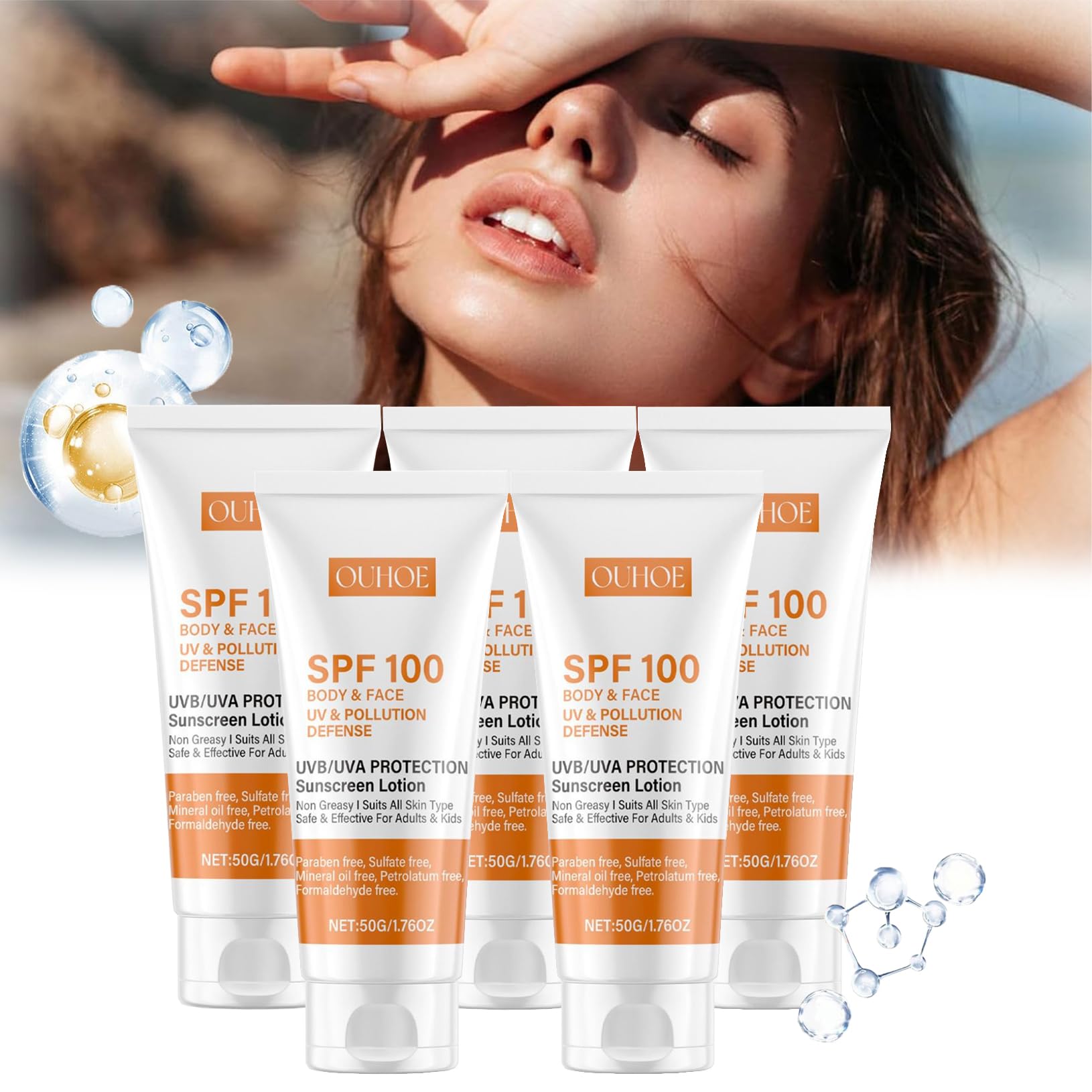 Features: 1. Effective Sun Protection and Anti-Aging: Our product combines anti-aging and sun protection functions to effectively protect the skin from radiation, wrinkles, and pigmentation. 2. Gentle and Non-Irritating: Made with a gentle formula free of harsh chemicals, it won't cause allergies or irritation and is suitable for sensitive skin. 3. Long-Lasting Hydration: The moisturizing ingredients effectively hydrate the skin, keeping it moisturized and preventing dryness. 4. Refreshing and Non-Greasy Texture: The refreshing texture absorbs easily without leaving a greasy residue, leaving the skin feeling refreshed and pleasant. 5. Multiple Effects: In addition to its anti-aging and sun protection properties, it also has a repairing and firming effect, nourishing and brightening the skin. Specifications: Name: SPF 100 Sunscreen Net Weight: 50 g Shelf Life: 3 years Skin Types: All skin types Storage Method: Store in a cool, well-ventilated place Contents: Pack of 3 SPF 100 sunscreens Directions for Use: Apply generously 15 minutes before sun exposure. Reapply after 80 minutes of swimming or sweating and again every 2 hours. Safety Warning: None See more Features: 1. Effective Sun Protection and Anti-Aging: Our product combines anti-aging and sun protection functions to effectively protect the skin from radiation, wrinkles, and pigmentation. 2. Gentle and Non-Irritating: Made with a gentle formula free of harsh chemicals, it won't cause allergies or irritation and is suitable for sensitive skin. 3. Long-Lasting Hydration: The moisturizing ingredients effectively hydrate the skin, keeping it moisturized and preventing dryness. 4. Refreshing and Non-Greasy Texture: The refreshing texture absorbs easily without leaving a greasy residue, leaving the skin feeling refreshed and pleasant. 5. Multiple Effects: In addition to its anti-aging and sun protection properties, it also has a repairing and firming effect, nourishing and brightening the skin. Specifications: Name: SPF 100 Sunscreen Net Weight: 50 g Shelf Life: 3 years Skin Types: All skin types Storage Method: Store in a cool, well-ventilated place Contents: Pack of 3 SPF 100 sunscreens Directions for Use: Apply generously 15 minutes before sun exposure. Reapply after 80 minutes of swimming or sweating and again every 2 hours. Safety Warning: None See moreOrgrul Lot de 5 crèmes solaires, SPF 100, protection UVA UVB, hydratantes, anti-âge, 50 g 5 pièces.DESCRIPTION DU PRODUIT DESCRIPTION DU PRODUIT Caractéristiques : 1. Protection solaire et anti-âge efficace : notre produit intègre des fonctions anti-âge et de protection solaire qui peuvent protéger efficacement la peau contre les rayonnements, les rides et les dépôts pigmentaires. 2. Doux et non irritant : en utilisant un produit doux qui ne contient pas de produits chimiques nocifs pour la peau, il ne provoque pas d'allergies ou d'irritations et il est adapté pour une utilisation sur les peaux sensibles. 3. Hydratation longue durée: les ingrédients hydratants peuvent hydrater efficacement la peau, la garder hydratée et prévenir la sécheresse. 4. Texture rafraîchissante et non grasse : la texture est rafraîchissante et pénètre facilement sans laisser de sensation grasse sur la peau, ce qui la rend rafraîchissante et agréable. 5. Effets multiples : en plus des fonctions anti-âge et de protection solaire, elle a également un effet réparateur et raffermissant qui peut nourrir et illuminer la peau de manière complète. Spécifications: Nom : crème solaire SPF 100 Poids net : 50 g. Durée de vie : 3 ans. Types de peau : tous types de peau Méthode de stockage : dans un endroit frais et ventilé Contenu : Lot de 3 crèmes solaires SPF 100. MODE D'EMPLOI Appliquer généreusement 15 minutes avant l'exposition au soleil. Réappliquer après 80 minutes de natation ou de transpiration et à nouveau toutes les 2 heures. AVERTISSEMENT DE SÉCURITÉ Non Voir plusApplication : Appliquer généreusement 15 minutes avant l'exposition au soleil. Réappliquer après 80 minutes de natation ou de transpiration et à nouveau toutes les 2 heures. Non gras : la crème solaire imperméable pénètre rapidement et ne laisse pas de sensation collante sur la peau. Convient à tous les types de peau et à tous les âges. Protection solaire anti-âge : la crème solaire protège efficacement contre les rayons UV ainsi que contre les effets de la lumière bleue, et empêche les rides dues au soleil, les taches pigmentaires et l'hyperpigmentation. Crème Solaire Visage Corps : La crème solaire SPF 100 offre une protection instantanée contre la lumière contre les coups de soleil avec des filtres UVA UVB, préservant ainsi la peau des coups de soleil et du vieillissement prématuré de la peau. Indispensable en été. Protection contre les rayons UVA et UVB : la crème solaire hydratante SPF 50 protège contre les rayons UVA qui provoquent un vieillissement prématuré de la peau et contre les rayons UVB qui causent des dommages cutanés à long terme.