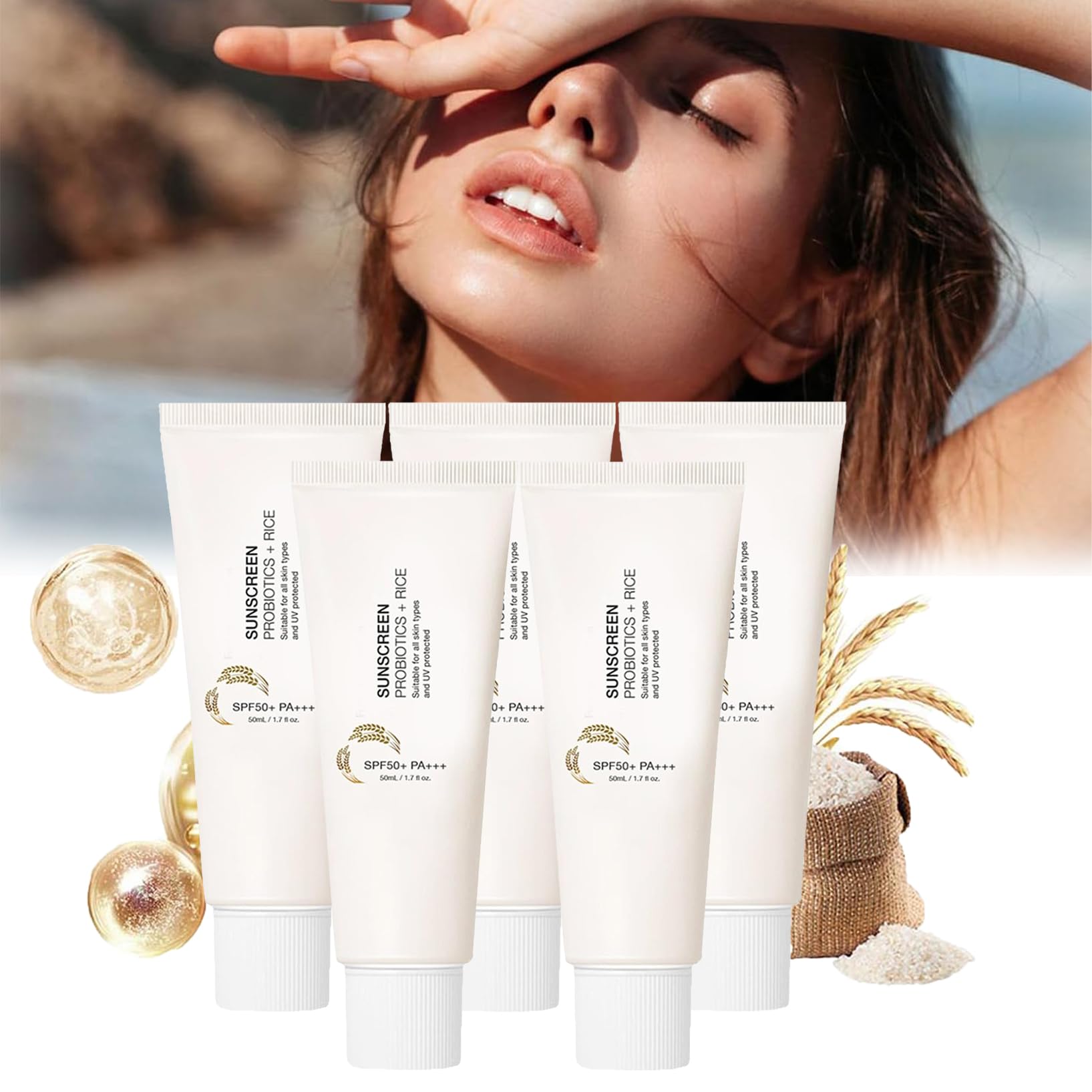 ————————— Welcome to our shop ———————————— Dear customer, welcome to our store. We provide you with a variety of reliable and high-quality products and hope that you can buy your favorite products. Thank you very much and enjoy shopping. Features: 1st Main Ingredients: Rice sunscreen is mainly composed of travel extract, which contains vitamin E and antioxidants. 2nd Protection: the unique ingredients help with skin damage and provide effective protection against the sun. 3rd Moisturizing and Hydrating: Rice sunscreen not only protects the skin, but also effectively nourishes it after drying and peeling in the sun. 4th Aging: Using rice sunscreen can effectively prevent skin aging and skin aging caused by radiation. 5. Preferred in summer: Due to its many benefits, rice sunscreen has become many people's favorite sunscreen for outdoor activities in summer. Use: 15-20 minutes before outdoor activities, apply an appropriate amount of moisturizing sunscreen evenly to face, neck and other areas exposed to sunlight, especially after swimming or sweating, and reapply. Specifications: Name: Rice Probiotics Sunscreen SPF50 Sunscreen Specifications: 50ml Shelf life: 3 years Package contents: 1 2 3 5 pieces Rice probiotics sunscreen SPF50 sunscreen (If you have any questions about this product, you can contact us. We provide 24-hour service.) ————————— Happy shopping —————————— INSTRUCTIONS FOR USE After skin care, apply a generous amount to the skin, excluding the eye area, and massage thoroughly. Reapply after swimming or sweating. Spend 15-20 minutes for outdoor activities. SAFETY WARNING none See moreVersatile sun protection: Our sunscreen is ideal for daily use on the face and body and a must for outdoor enthusiasts. Instructions for Use After your skin care, apply a generous amount of sunscreen to the skin except the eyes and massage it in thoroughly. Gentle and non-greasy formula: Our sunscreen has a soft, creamy texture that glides gently onto the skin, without leaving a greasy residue. Long-lasting protection: Enjoy the protection of our sun protection all day long, which is water and sweat resistant - ideal for beach trips or strenuous activities. Sun protection with SPF 50 and probiotics: Containing 30 travel extract and probiotics extracted from grains, this sun protection provides the skin with moisture and nutrients while protecting it from harmful UVA and UVB rays.Rice Probiotics SPF50 PA Sunscreen, Sunscreen SPF 50, waterdicht zonneserum, rijstprobiotics zonnebrandcrème SPF50 zonnescherm, Koreaans rijstzonnescherm, 50ml (5 stuks) 5 stuks. ————————— Welkom in onze shop ———————————— Beste klant, welkom in onze winkel. Wij bieden je een verscheidenheid aan betrouwbare en kwalitatief hoogwaardige producten en hopen dat je je favoriete producten kunt kopen. Hartelijk dank en veel plezier bij het winkelen. Kenmerken: 1ste Hoofdbestanddelen: rijstzonnebrandcrème bestaat voornamelijk uit reistextract, dat vitamine E en antioxidanten bevat. 2de Bescherming: de unieke ingrediënten helpen bij huidschade en bieden effectieve bescherming tegen de zon. 3de Vochtinbrengend en hydraterend: rijstzonnebrandcrème beschermt de huid niet alleen, maar verzorgt deze ook effectief na het uitdrogen en afpellen in de zon. 4de Veroudering: het gebruik van rijstzonnebrandmiddelen kan huidveroudering en huidveroudering door straling effectief voorkomen. 5. In de zomer de voorkeur: vanwege de vele voordelen is rijstzonnebrandcrème in de zomer voor veel mensen de favoriete zonnebrandcrème voor buitenactiviteiten geworden. Gebruik: 15-20 minuten voor outdooractiviteiten een geschikte hoeveelheid vochtinbrengende zonnebrandcrème gelijkmatig op gezicht, hals en andere gebieden die aan zonlicht worden blootgesteld, vooral na het zwemmen of zweten, en opnieuw aanbrengen. Specificaties: Naam: Rice Probiotics Sunscreen SPF50 Sunscreen Specificaties: 50ml Houdbaarheid: 3 jaar Inhoud van de verpakking: 1 2 3 5 stuks Rijstprobiotics zonnebrandcrème SPF50 zonnebrandcrème (Als je vragen hebt over dit product, kun je contact met ons opnemen. Wij bieden een 24-uurs service.) ————————— Veel plezier bij het winkelen —————————— GEBRUIKSAANWIJZING Breng na de huidverzorging een royale hoeveelheid aan op de huid, exclusief het gebied rond de ogen, en masseer deze grondig. Opnieuw aanbrengen na het zwemmen of zweten. Breng 15-20 minuten voor buitenactiviteiten. VEILIGHEIDSWAARSCHUWING geen Meer bekijkenVeelzijdige zonwering: onze zonnebrandcrème is ideaal voor dagelijks gebruik op het gezicht en op het lichaam en een must voor outdoorfans. Gebruiksaanwijzing Breng na je huidverzorging een royale hoeveelheid zonnebrandmiddel op de huid aan, behalve de ogen en masseer het grondig in. Zachte en niet-vette formule: onze zonwering heeft een zachte, romige textuur die zacht op de huid glijdt, zonder een vettig residu achter te laten. Langdurige bescherming: geniet de hele dag van de bescherming van onze zonwering, die water- en zweetbestendig is – ideaal voor stranduitstapjes of inspannende activiteiten. Zonwering met SPF 50 en probiotica: deze zonwering bevat 30 reisextract en uit granen gewonnen probiotica en voorziet de huid van vocht en voedingsstoffen en beschermt hem tegelijkertijd tegen schadelijke UVA- en UVB-stralen.