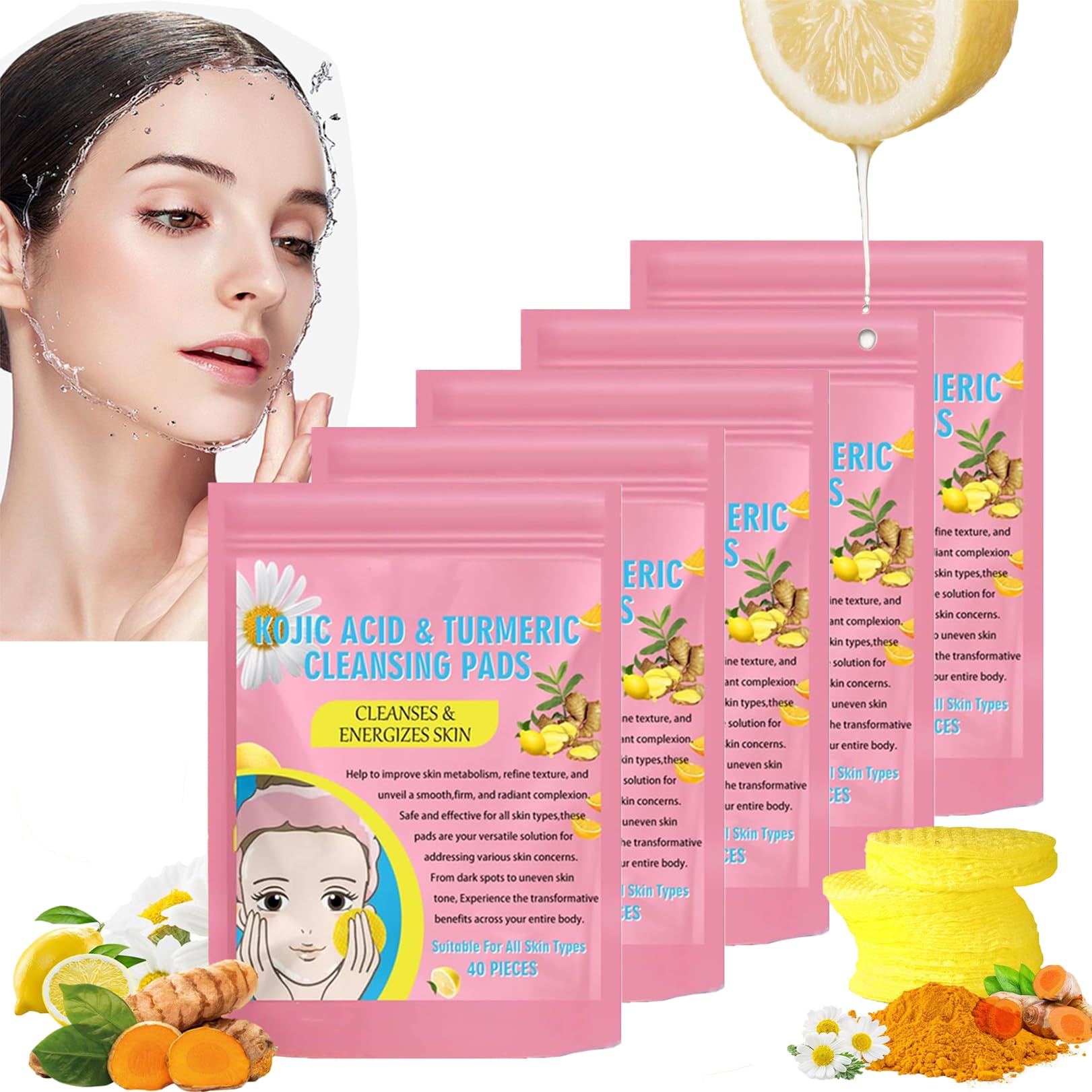 Features: 1. Fights pimples, dark circles, eczema spots, dry skin, oily skin, dermatitis, psoriasis, dark spots, scars, dark neck, dark chin, dark cheeks, elbows, knees, inner thighs, and neck. 2. Exfoliating cleansing pads with turmeric and kojic acid are a completely natural product for pure skin that enjoys great popularity. They give you baby-soft skin. You get rejuvenated skin with fewer dark spots and blemishes. 3. Uneven skin tone is a thing of the past with our skincare products. You will no longer need to search for advice on clear skin. Dark spots on your face will gradually disappear. You can use this product every day. Ideal for oily and dry skin. 4. Suitable for all skin types and the entire body, especially the face. Gentle and non-irritating. It is recommended to use it every other day. However, it can be used daily, up to twice a day, using the soft side of the pad carefully. It lathers. It helps achieve clear skin. Instructions: 1. Apply a small amount of warm water to your face. 2. Apply the pad directly to your face and wash it in circular motions for 1 to 2 minutes. 3. You can leave it on for up to 2 minutes. For a darker complexion, leave it on for up to 5 minutes. 4. Rinse thoroughly and use kojic acid serum for best results. 5. If you have oily skin, we recommend using 2 pads or blotting away excess oil from your skin before use. Features: Packaging: in a sachet. Material: Non-woven fabric. Product Specifications: 40 pieces box Product Dimensions: 5.5 x 5.5 cm Contents: 1 2 3 5 boxes Exfoliating Cleansing Pads with Turmeric Kojic Acid SAFETY WARNING NoEasy to use: Skincare on the go. Each pack contains 40 koji and turmeric facial pads. These cleansing pads are perfect for travel and offer a simple way to maintain a skincare routine. Skin-improving: Infused with vitamin C and other natural exfoliating ingredients that help reduce the appearance of dark spots and hyperpigmentation, cleanse the skin, promote an even skin tone, and utilize antioxidant properties to enhance skin vitality. Daily use helps keep skin supple, soft, and radiant. Address multiple skin concerns: Our turmeric and koji acid pads offer a comprehensive approach to skincare, helping to repair the skin barrier, minimize pores and fade dark spots, and balance skin oil and moisture for a radiant complexion. Deep cleansing and moisturizing: These turmeric and kojic acid pads can help deeply cleanse pores, remove blackheads, excess oil, toxins, and dirt, relieve daily skin stress, prevent acne, nourish the skin, and improve hydration. Each time you use these pads, your skin feels refreshed and rejuvenated. Natural ingredients: Made with soft, premium-quality natural cotton and containing turmeric, chamomile, lemon, and other gentle, non-irritating ingredients, suitable for all skin types.Turmeric Kojic Acid Lot de 200 tampons nettoyants exfoliants à l'acide kojique et au curcuma pour le visage, les cicatrices d'acné, les pores Unclog, aident à équilibrer l'huile de la peau et l'eau 200 piècesDESCRIPTION DU PRODUIT DESCRIPTION DU PRODUIT Caractéristiques : 1. Combat les boutons, les cernes, les taches d'eczéma, la peau sèche, la peau grasse, la dermatite, le psoriasis, les taches sombres, les cicatrices, le cou foncé, le menton foncé, les joues foncées, les coudes, les genoux, l'intérieur des cuisses, le cou. 2. Les tampons de nettoyage exfoliants au curcuma et à l'acide kojique sont un produit tout à fait naturel pour la peau pure qui jouit d'une grande popularité. Elles vous donnent une peau lisse de bébé. Vous obtenez une peau rajeunie avec moins de taches sombres et de imperfections. 3. Un teint irrégulier appartient au passé avec nos produits pour la peau. Vous ne serez plus à la recherche de conseils pour une peau propre. Les taches sombres sur votre visage disparaîtront lentement. Vous pouvez utiliser ce produit tous les jours. Idéal pour les peaux grasses et sèches. 4. Convient à tous les types de peau et à tout le corps, en particulier pour le visage. Doux et non irritant. Il est recommandé de l'utiliser tous les deux jours. Mais il peut être utilisé chaque jour jusqu'à deux fois par jour en utilisant le côté doux du tampon avec précaution. Ces mousses. Il aide à obtenir une peau claire. Instructions : 1. Appliquez une petite quantité d'eau chaude sur votre visage. 2. Appliquez le tampon directement sur votre visage et lavez-le en mouvements circulaires pendant 1 à 2 minutes. 3. Vous pouvez laisser agir jusqu'à 2 minutes. Pour un teint plus foncé jusqu'à 5 minutes. 4. Rincez bien et utilisez le sérum à l'acide kojique pour de meilleurs résultats. 5. Si vous avez une peau grasse, nous vous conseillons d'utiliser 2 tampons ou d'essuyer les huiles de votre peau avant utilisation. Caractéristiques : Emballage : dans un sachet. Matériau : tissu non tissé. Spécifications du produit : 40 pièces boîte Dimensions du produit : 5,5 x 5,5 cm Contenu : 1 2 3 5 boîtes Tampons nettoyants exfoliants à l'acide kojique Turmeric AVERTISSEMENT DE SÉCURITÉ NonFacile à utiliser : soin de la peau pour les déplacements. Chaque paquet contient 40 tampons faciaux koji et curcuma. Ces tampons de nettoyage sont parfaits pour les déplacements et offrent un moyen simple de prendre soin d'une routine de soins de la peau. Amélioration de la peau de la peau : imprégnée de vitamine C et d'autres ingrédients exfoliants naturels qui aident à réduire l'apparition de taches sombres et d'hyperpigmentation, à nettoyer la peau, à promouvoir un teint uniforme tout en utilisant les propriétés antioxydantes pour améliorer la vitalité de la peau. L'utilisation quotidienne aide à garder la peau souple, douce et éclatante. Résolvez plusieurs problèmes de peau : nos tampons d'acide de curcuma et de coji offrent une approche complète des soins de la peau, aident à réparer la barrière cutanée, à réduire les pores et à décolorer les taches sombres, à équilibrer la g