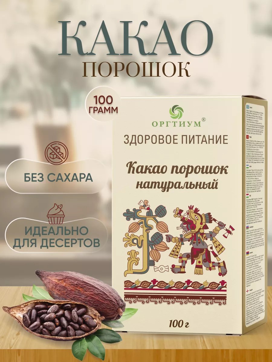Какао-порошок получают из семян дерева какао. Родовое название Theobroma буквально переводится как «пища богов» подходящее название для растения, которое было почитаемо с древнейших времен, и не только за свой уникальный вкус, но и за лечебные и питательные свойства.Химический состав какао-порошка достаточно сложен. В нем содержатся белки, углеводы, дубильные, красящие, ароматические, органические и минеральные вещества. Кроме того, какао-порошок богат такими элементами как кофеин и теобромин.Какао-порошок используют: Для приготовления кондитерских изделий, десертов, шоколадных напитков. Какао-порошок содержит магний, медь, марганец, железо, фосфор, калий и цинк, а также некоторые витамины группы B и витамин РР. Подходит для приготовления блюд правильного и кето-питания благодаря большому количеству пищевых волокон, жиров и растительных белков. Порадуйте себя близких родных детей этим замечательным вкусным и полезным продуктом.
