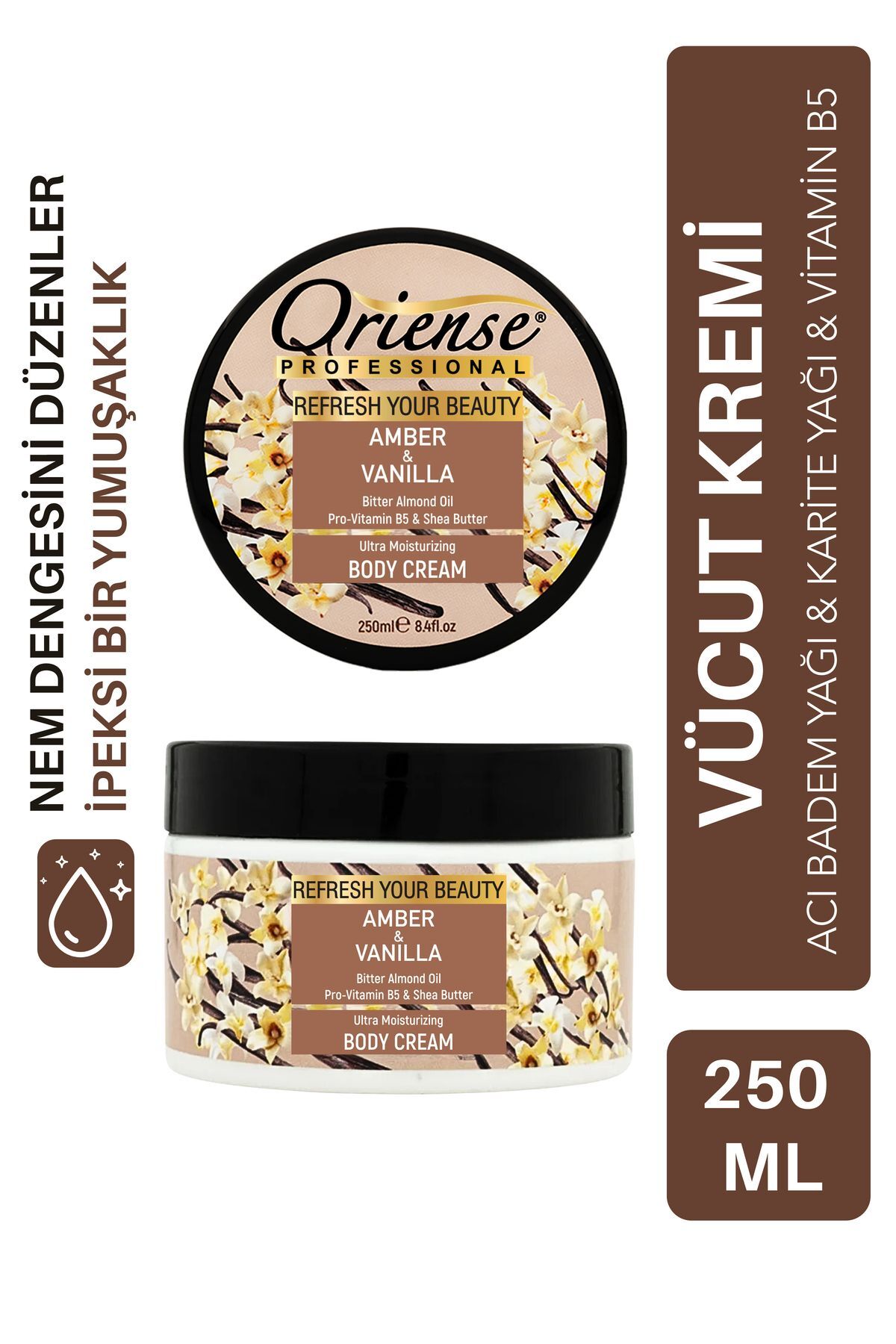 ORIENSE Amber and Vanilla Body Cream - Contains Bitter Almond Oil Shea Butter Glycerin Panthenol and Vitamin E