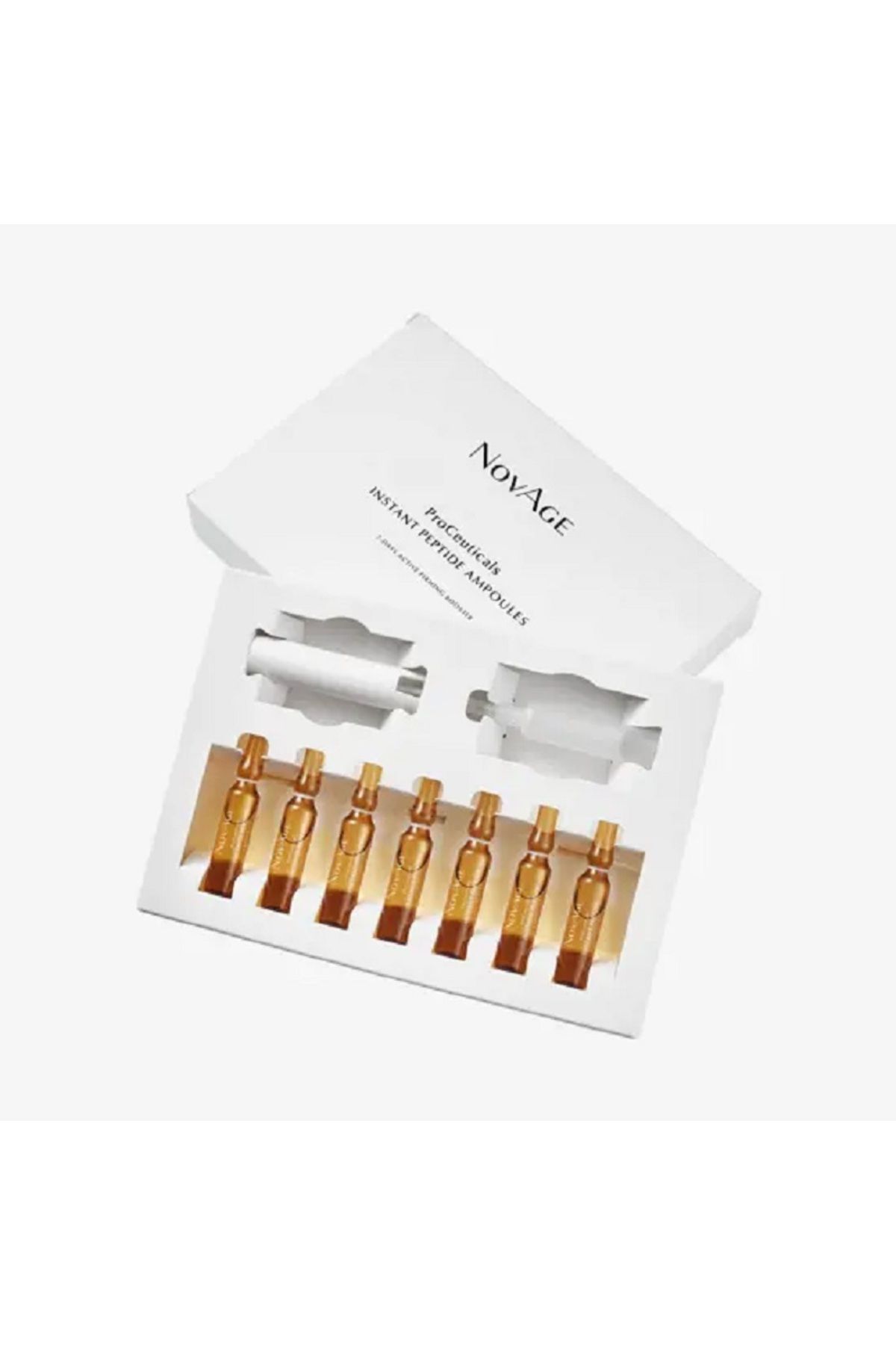 As we age, the skin becomes thinner and less elastic, causing skin sagging and wrinkles. NovAge Proceuticals Instant Peptide Ampoules is a one-week ampoule formula with an intensely targeted formulation specifically designed to lift and firm skin both instantly and for 7 days. Developed with two active ingredients, a multi-peptide solution and Tensor Mesh Active, these ampoules help boost collagen production internally while instantly lifting and firming the skin's surface.
