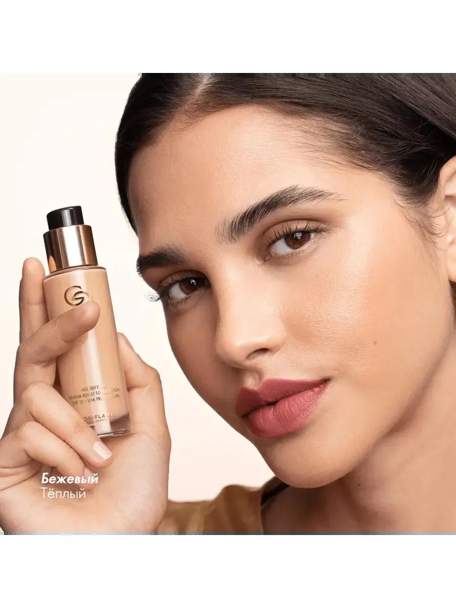 Бежевый (тёплый) оттенок Антивозрастная тональная основа с сывороткой для сияющей, молодой и гладкой кожи. Ты сможешь мгновенно сгладить мелкие морщинки и выровнять тон кожи с помощью этой роскошной тональной основы с естественным финишем.