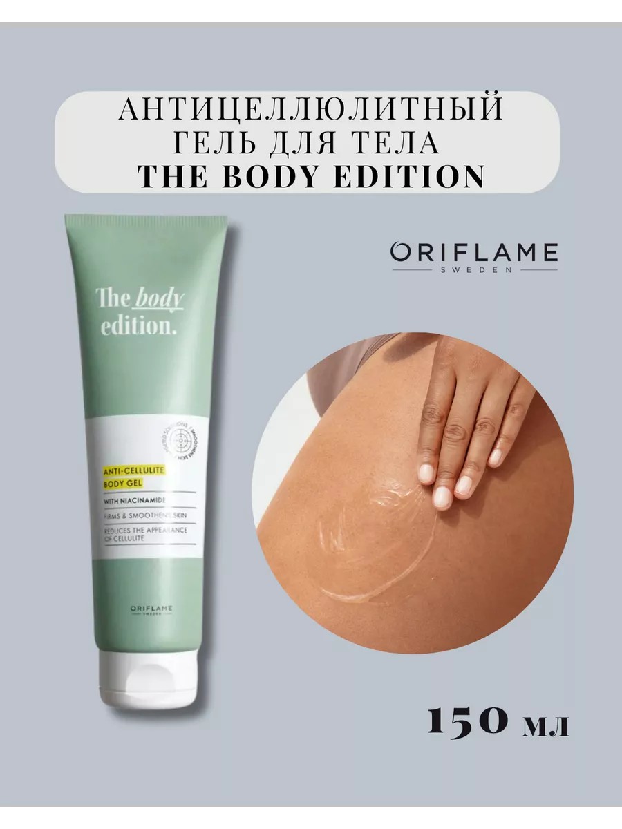 Антицеллюлитный гель для тела The body edition от Орифлейм, 150 мл. Мечтаешь избавиться от целлюлита? Твоё решение – гель с ниацинамидом! Укрепляет и подтягивает кожу. Быстро впитывающаяся формула. Свежий цветочный аромат. Клинически доказанное уменьшение целлюлита за 28 дней. Ниацинамид – это форма витамина В3, который улучшает качество кожи, разглаживая, укрепляя и повышая её упругость. Ниацинамид помогает сделать кожу более эластичной и уменьшить проявление целлюлита. Упаковка на 31% состоит из переработанного пластика. По результатам клинического тестирования. По результатам потребительского тестирования.