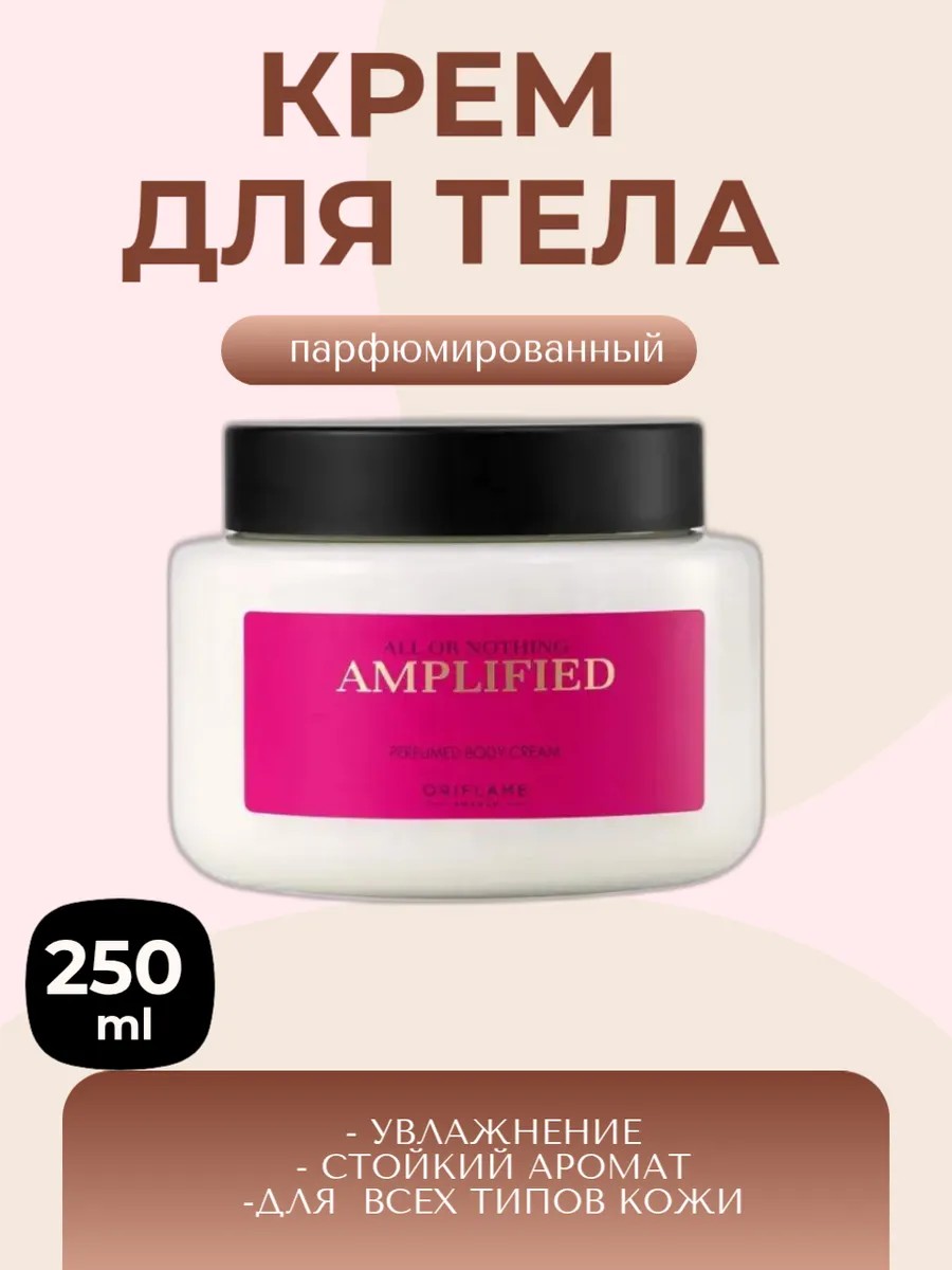 Парфюмированный крем для тела All or Nothing Amplified [Ол о Насинг Эмплифайд] Восхитительный парфюмированный крем для тела придает коже мягкость, эластичность и дарит ей яркий и женственный амбровый цветочный аромат духов All or Nothing Amplified.