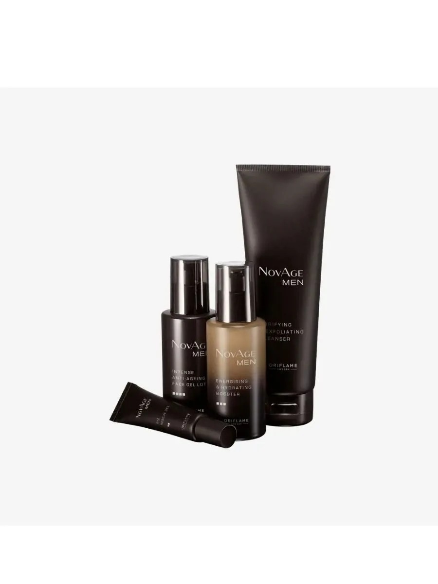 Комплексный уход для мужской кожи NovAge Men разработан специально для мужской кожи, чтобы бороться с признаками старения и усталости. Кожа наполняется энергией, становится более свежей, гладкой и молодой. В набор входит: средство для умывания и скраб 2 в 1 NovAge Men, тонизирующий гель для кожи вокруг глаз NovAge Men, увлажняющая энергосыворотка для лица NovAge Men и увлажняющий гель-крем против старения кожи NovAge Men. Предназначен для использования в качестве простой, но действенной процедуры, которая занимает менее 2 минут утром и вечером.