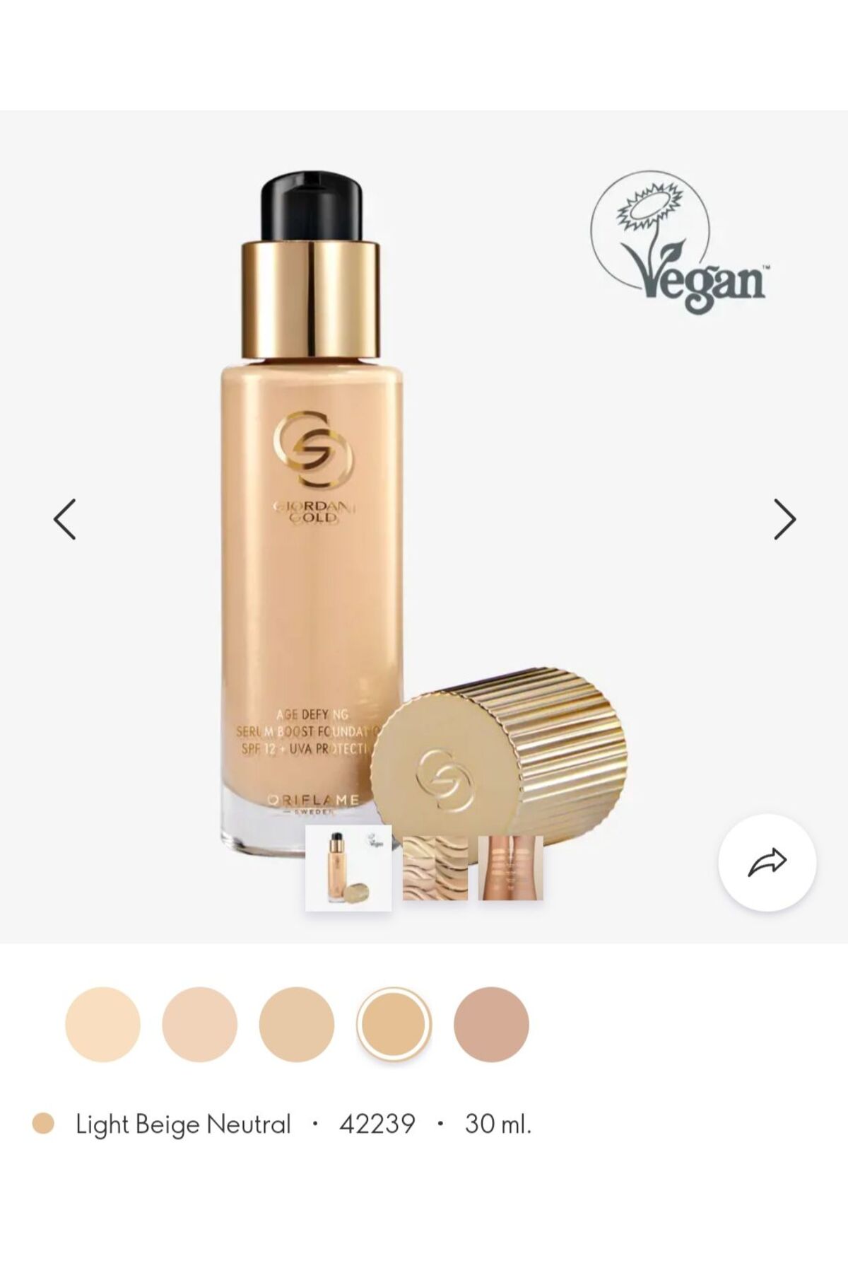Oriflame Giordani Gold Age Defying Strengthening Serum Foundation light beige neutral