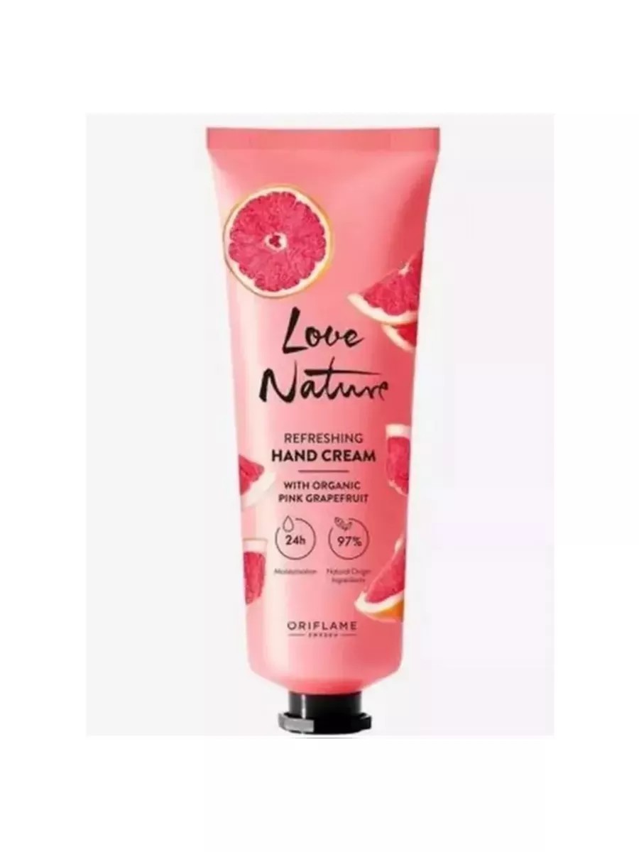 A refreshing formula with organic pink grapefruit extract and a juicy citrus scent. 24-hour hydration. 97% naturally derived ingredients and a tube made from 43% recycled plastic. Harness nature's bounty to moisturize and comfort dry hands. This refreshing hand cream with a juicy citrus scent and a lightweight, fast-absorbing texture softens skin, restores its elasticity, and restores its protective barrier. Enriched with organic pink grapefruit extract, it provides long-lasting hydration and protection. 24-hour hydration, 97% naturally derived ingredients, and a tube made from 43% recycled plastic.