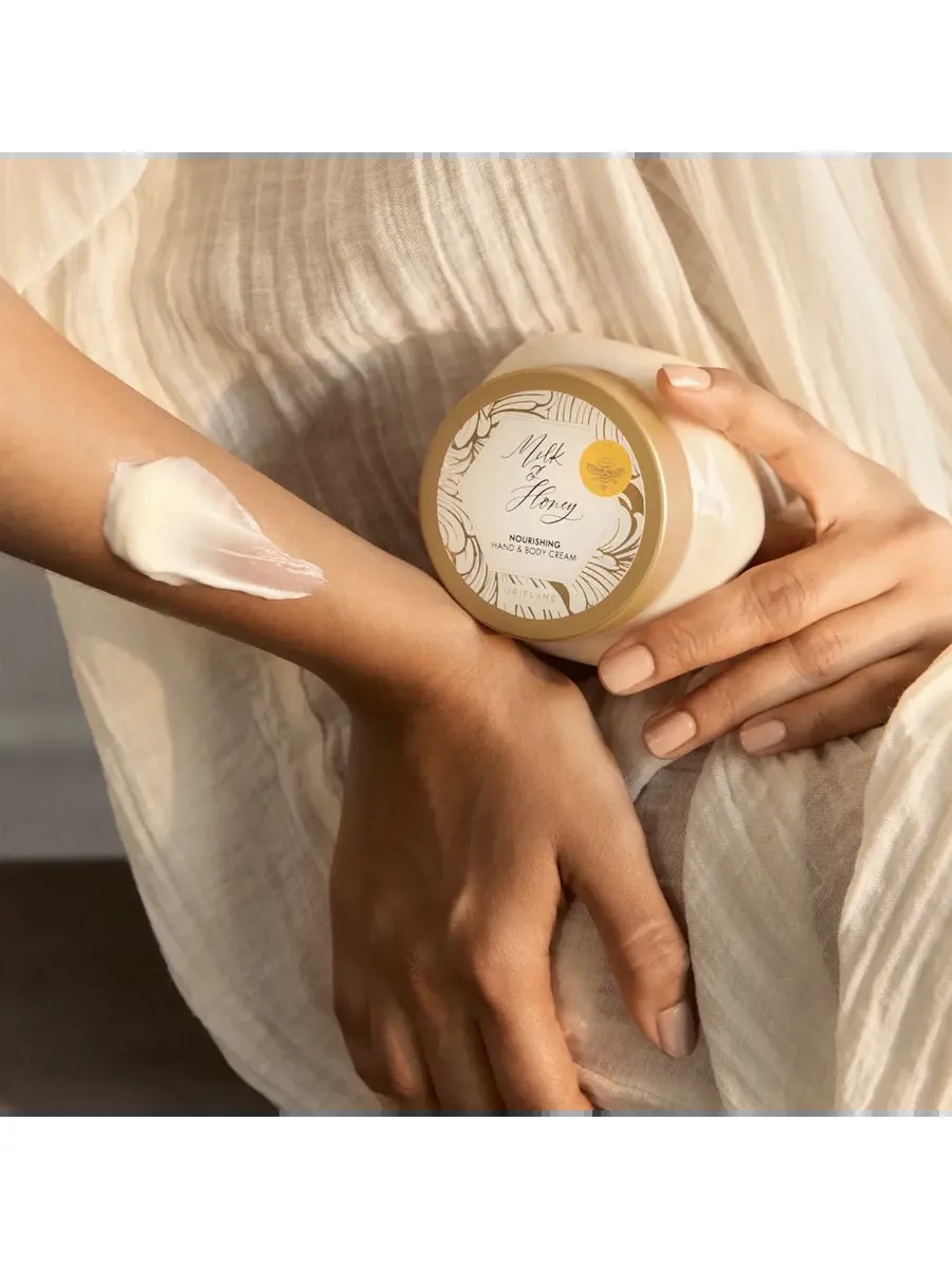 Этот насыщенный крем для рук и тела с нежным ароматом создан на основе органических экстрактов молока и мёда.