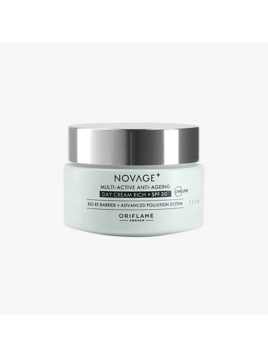 Крем для лица Oriflame Novage+ Multi-Active Anti-Ageing Day Cream Rich SPF 30 — это инновационный антивозрастной уход, созданный на основе передовых технологий и тщательно подобранных активных компонентов. Продукт разработан специально для обеспечения интенсивного питания, увлажнения и защиты кожи в течение всего дня.