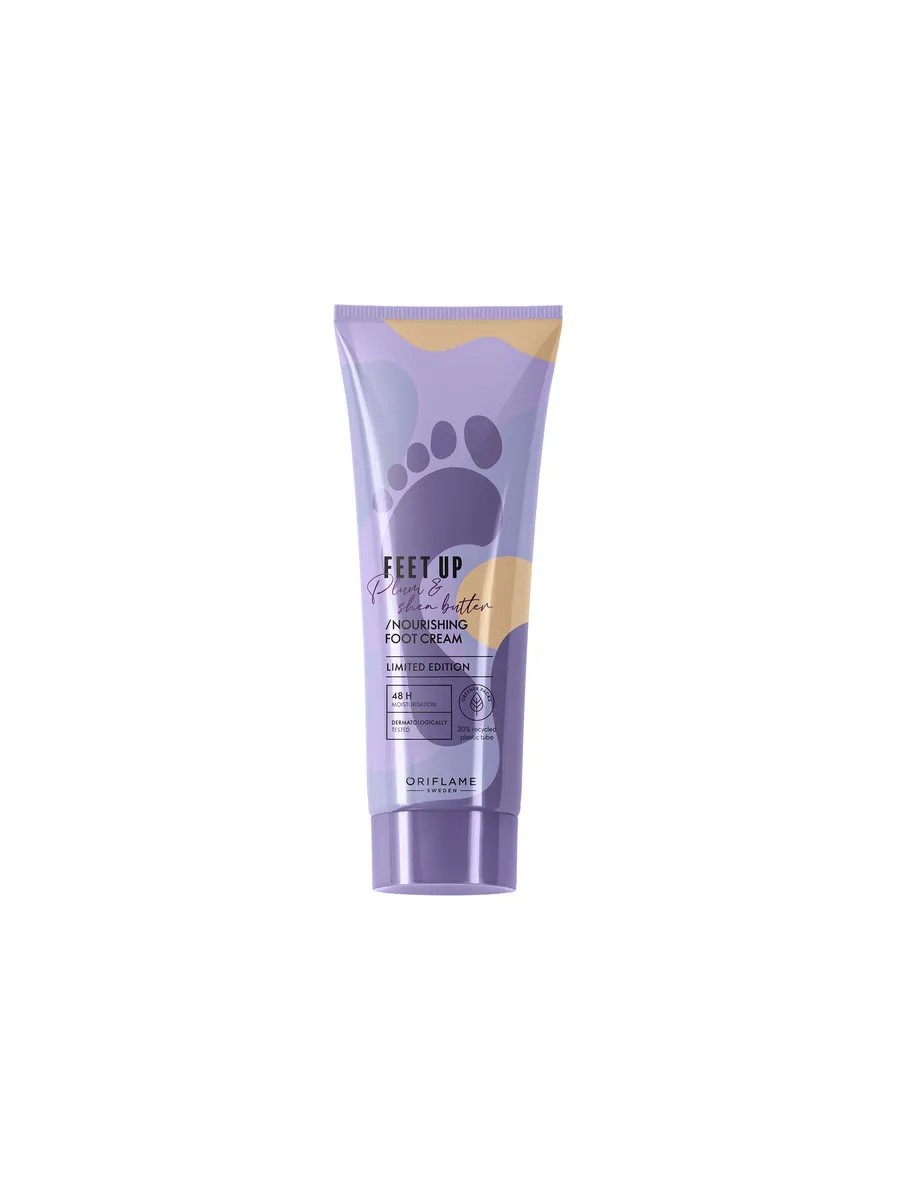 Our fast-absorbing foot cream contains plum extract and shea butter, which intensely moisturizes skin for 48 hours*, leaving feet soft and nourished.