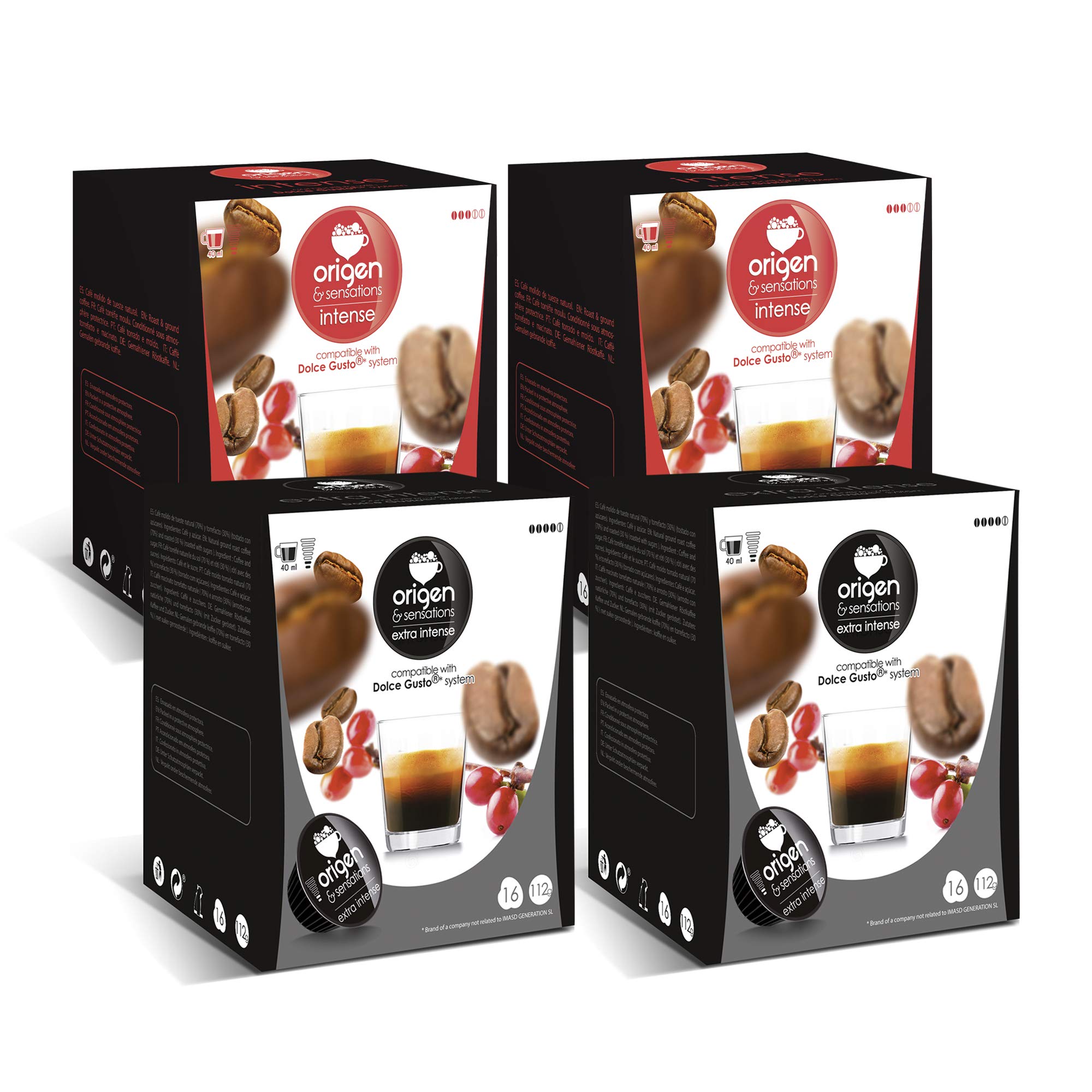 Origen & Sensations Dolce Gusto Pack of 64 Compatible Coffee Capsules - Origin & Sensations Coffee Capsules - 2 Extra Intenso Capsules - 2 Intenso Capsules - 64 Compatible Coffee Capsules