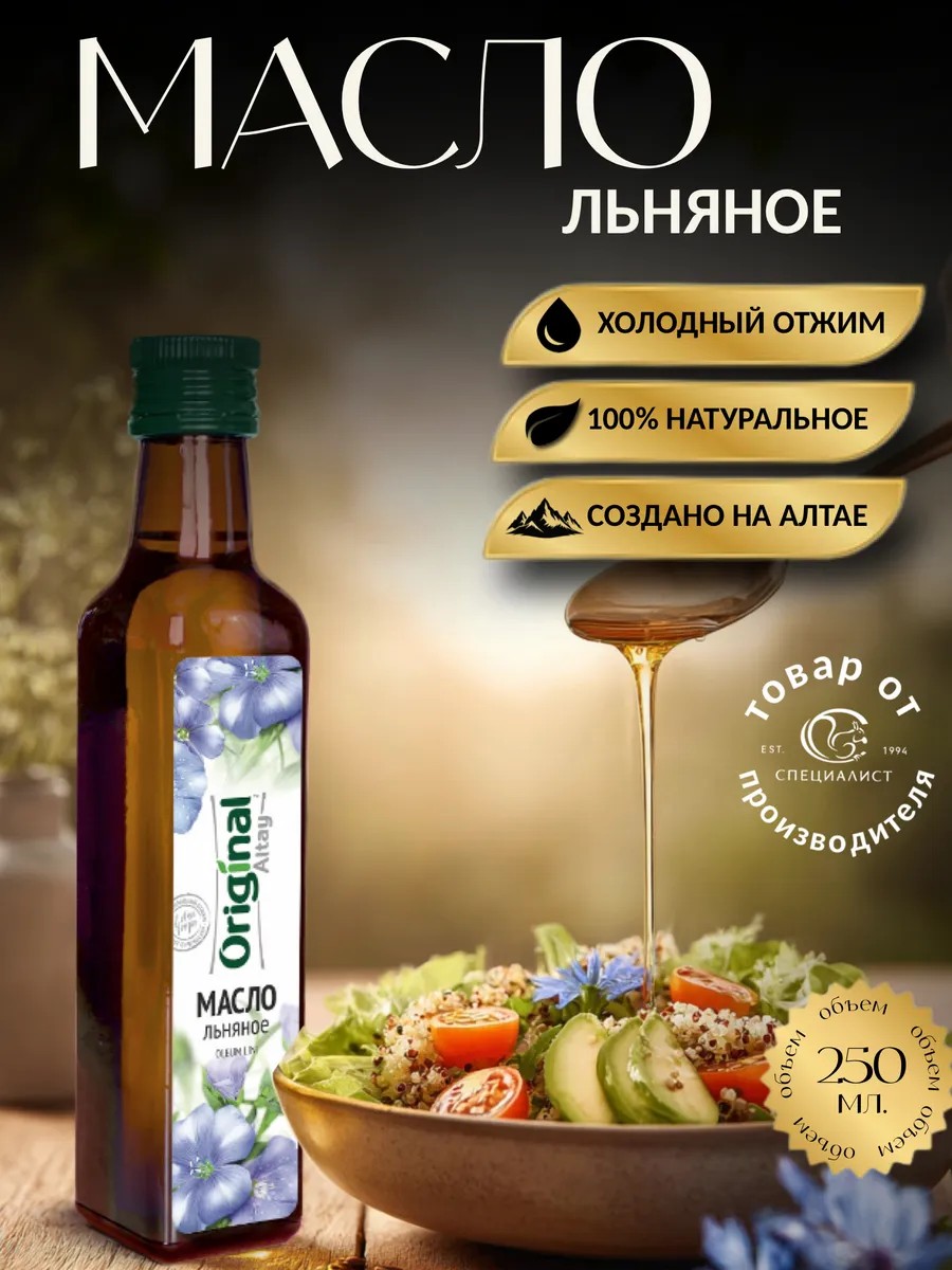 Flaxseed oil is made from the seeds of the Altai flax plant. The seeds are carefully pressed using the first cold-pressing technology, preserving the oil's flavor and nutritional benefits. It is a 100% natural, non-GMO dietary product.