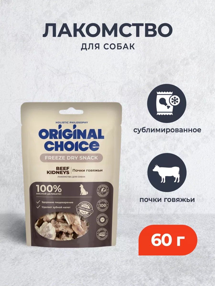 Original Choice Сублимированное лакомство для собак почки говяжьи - 60 г