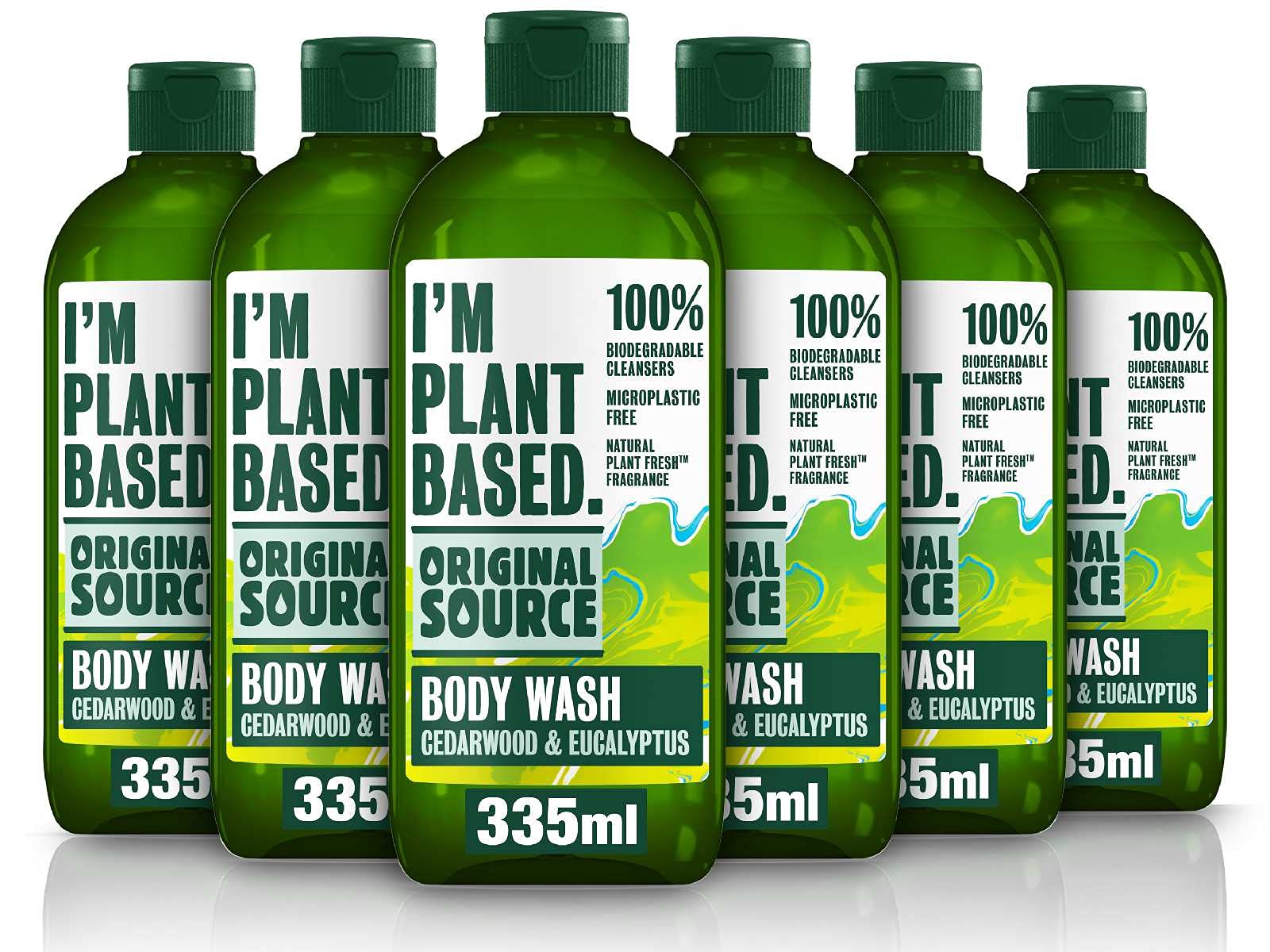 Are you ready to experience the power of plants with Original Source I'm Plant Cedarwood Eucalyptus Body Wash? Cool! I'm made with plants. Put on the top for a sumptuous lather and a fresh forest awakening from wild cedarwood and remarkably refreshing crushed eucalyptus. Naturally mild, gentle, and kind to animals. Dive into nature with our 96 naturally derived body washes packed with good plant materials and consciously sourced natural ingredients. Free from sulfates, SLES, and SLS. Created to invigorate your skin and senses for a fresh, sensorial shower experience. 100 biodegradable cleansers with a rich lather that's soft, gentle, and cares for your skin. 100 natural, fresh plant fragrances capture nature for a "just picked" freshness. Made in the UK with 100 recyclable bottles made from 100 recycled plastic (PCR). We're proud that all our body wash products are 100 microplastic-free, paraben-free, cruelty-free, and vegan. The natural choice for a man's shower. The natural choice for a woman's shower. Source of origin. AFORCEOFNATURENatural Oh So Foam - Dive into nature with our 96 naturally derived body wash created to invigorate your skin and senses for a fresh, sensorial shower experience. Packed with plant-derived and natural ingredients. Naturally gentle, cruelty-free, and richly lathering. Microplastic-free, cruelty-free, vegan - Original Source is proudly microplastic-free, paraben-free, and animal-loving. Original Source has been the UK's number one vegan and vegetarian body wash brand for 18 years. A force of nature: a 100 natural fresh scent that captures nature for 'just picked' freshness in every bottle of body wash. An incredibly refreshing forest-fresh awakening with wild cedarwood and crushed eucalyptus. Original Source I'm Plant biodegradable cleanser made with cedarwood and eucalyptus. Are you ready to experience the power of plants? 100 biodegradable plant-based cleanser with a rich and sumptuous lather that is soft, gentle and cares for your skin.Original Source I'm Plant based Cedarwood Eucalyptus Gel douche 100 biodégradable, 100 sans microplastique, parfum 100 naturel, sans cruauté envers les animaux, végétalien, lot de 6 x 335 ml Bois de cèdre et eucalyptusDESCRIPTION DU PRODUIT Êtes-vous prêt à faire l'expérience de la puissance des plantes grâce au gel douche Original Source I'm Plant Cedarwood Eucalyptus ? Cool ! Je suis fabriqué avec des plantes. Mettez le haut pour une mousse somptueuse et un réveil frais de la forêt à partir de bois de cèdre sauvage et d'eucalyptus écrasé remarquablement rafraîchissant. Naturellement doux, doux et doux pour les animaux. Plongez dans la nature avec nos gels douche 96 d'origine naturelle remplis de bonnes matières végétales et d'ingrédients naturels d'origine consciente. Sans sulfates, SLES et SLS. Créé pour stimuler votre peau et vos sens pour une expérience de douche fraîche et sensorielle. Nettoyants 100 biodégradables avec une mousse riche qui est douce, douce et prend soin de votre peau. Les parfums frais végétaux 100 naturels capturent la nature pour une fraîcheur « juste cueilli ». Fabriqué au Royaume-Uni avec des bouteilles 100 recyclables fabriquées à partir de plastique 100 recyclé (PCR). Nous sommes fiers que tous nos produits en gel douche sont 100 sans microplastique, sans paraben, sans cruauté envers les animaux et végétaliens. Le choix naturel pour une douche pour homme. Le choix naturel pour un gel douche pour femme. Source d'origine. AFORCEOFNATURENatural Oh So Foam - Plongez dans la nature avec notre gel douche à 96 d'origine naturelle créé pour stimuler votre peau et vos sens pour une expérience de douche fraîche et sensorielle. Rempli d'ingrédients d'origine végétale et d'ingrédients naturels. Naturellement doux, respectueux des animaux et très moussant. Sans microplastique, sans cruauté, végétalien - La source originale est fièrement sans microplastique, sans paraben et amoureux des animaux. Original Source est la marque numéro un de gel douche végétalien et végétalien au Royaume-Uni depuis 18 ans. Une force de la nature : parfum frais 100 naturel qui capture la nature pour une fraîcheur « juste cueillie » dans chaque flacon de gel douche. Un réveil au frais de la forêt en bois de cèdre sauvage et d'eucalyptus écrasé incroyablement rafraîchissant. Nettoyant biodégradable Original Source I'm Plant à base de bois de cèdre et d'eucalyptus. Êtes-vous prêt à faire l'expérience de la puissance des plantes ? Nettoyant 100 biodégradable à base de plantes avec une mousse riche et somptueuse qui est douce, douce et prend soin de votre peau.