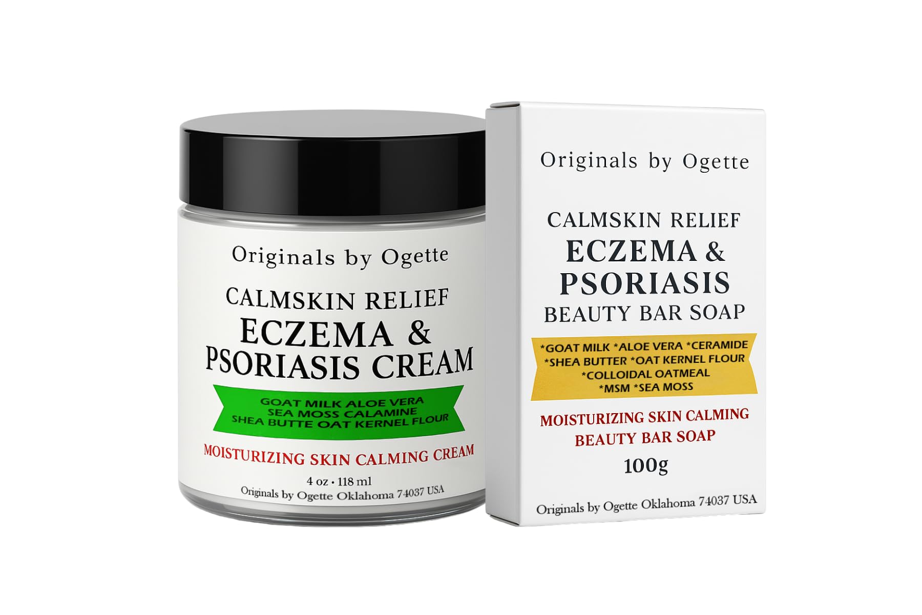 Originals by Ogette Hair and Skin Care Set Finishing Spray 4oz and Calmskin Relief Cream 4oz with Natural Ingredients
