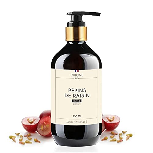 Grape seeds contain lipids, from which oil can be extracted. Dark green, the seeds contain a high concentration of omega-6, tocopherols, and phenolic compounds. These powerful antioxidants make this oil an excellent product for fighting free radicals and the signs of skin aging. Non-greasy, it easily penetrates the skin, making it the first choice for making massage oils, with the added benefit of emollient and regenerative properties. This oil is also called scrub and is ideal for the care of oily skin. - Antioxidant: rich in polyphenols, it fights free radicals responsible for the premature aging of our cellsOrigine is a French brand . All our products are dermatologically tested, vegan and not tested on animals . ULTRA FRESH AND ACTIVE LIVING PRODUCT Our grape seed oil. 100 pure, it is hexane-free and without added preservatives. Bottled in France. MULTIFUNCTIONAL, ECONOMICAL EFFECTIVE Oily scalp regulating mask, hair oil, makeup remover, nourishing treatment for acne-prone skin, cuticle oil, beard oil, nourishing and healing treatment after shaving and hair removal, anti-stretch marks. LIGHT TEXTURE FAST ABSORPTION Very fluid, it penetrates in a few moments and leaves a soft, non-greasy feel. ✓ GLASS BOTTLE, NOURISHES, SOFTENS PROTECTS Grape seed oil intensely nourishes all skin and hair types. Les pépins de raisin contiennent des lipides, dont l'huile peut être extraite. Vert foncé les pépins contiennent une forte concentration d'oméga-6, de tocophérols et de composés phénoliques. Ces puissants antioxydants font de cette huile un excellent produit pour lutter contre les radicaux libres et les signes du vieillissement cutané. Non grasse, elle pénètre facilement la peau, ce qui en fait le premier choix pour la fabrication d'huiles de massage, avec en plus des propriétés émollientes et régénérantes. Cette huile est aussi appelée gommage et est idéale pour les soins des peaux grasses. - Antioxydante : riche en polyphénols, elle lutte contre les radicaux libres responsables du vieillissement prématuré de nos cellulesOrigine est une marque française . Tous nos produits sont contrôlés dermatologiquement, vegan et non testés sur les animaux . PRODUIT VIVANT ULTRA FRAIS ET ACTIF Notre huile de pépin de raisin. 100 pure, elle est sans hexane et sans conservateurs ajoutés. Mise en bouteille en France. MULTIFONCTIONS, ÉCONOMIQUE EFFICACE Masque régulateur cuir chevelu gras, huile cheveux, démaquillant, soin nourrissant peaux acnéiques, huile cuticules, huile à barbe, soin nourrissant et cicatrisant après rasage et épilation, anti-vergetures. TEXTURE LÉGÈRE ABSORPTION RAPIDE Très fluide, elle pénètre en quelques instants et laisse un toucher doux, sans graisser. ✓ BOUTEILLE EN VERRE, NOURRIT, ADOUCIT PROTÈGE L'huile dePépin de raisin nourrit intensément tous les types de peaux et de cheveux.