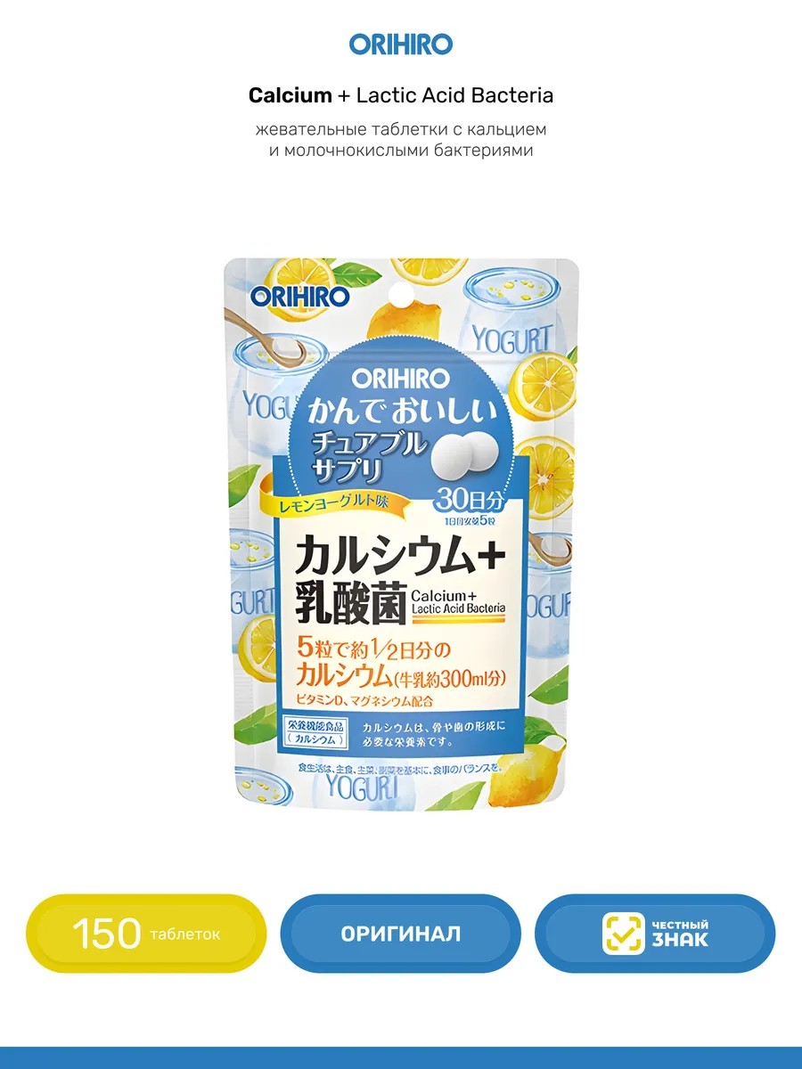 Dietary supplement ORIHIRO Calcium with lactobacilli in the form of chewable tablets.
