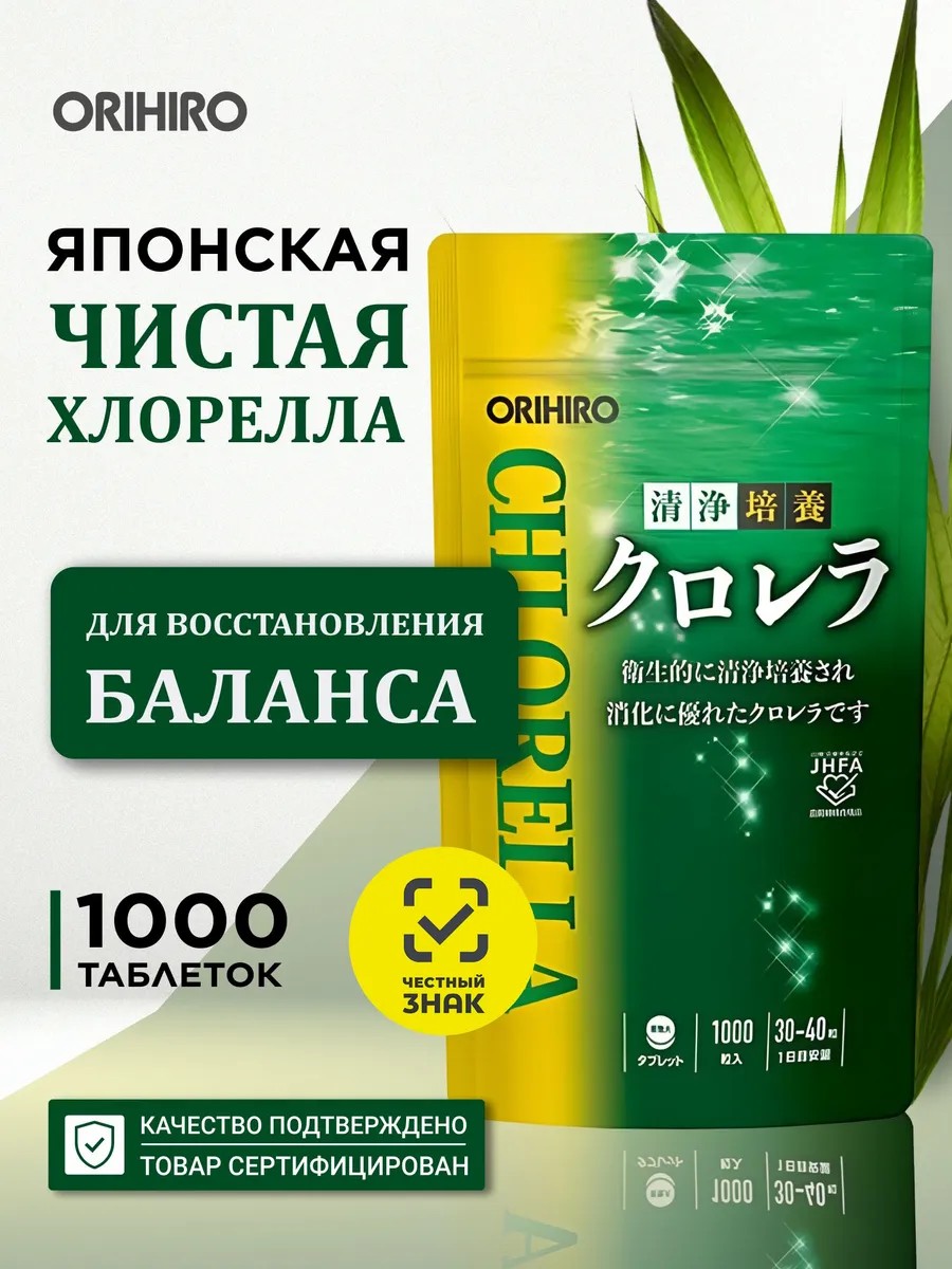 Chlorella 100% ORIHIRO + Iron and Vitamin B2 - 1000 capsules. A natural dietary supplement made from chlorella algae.
