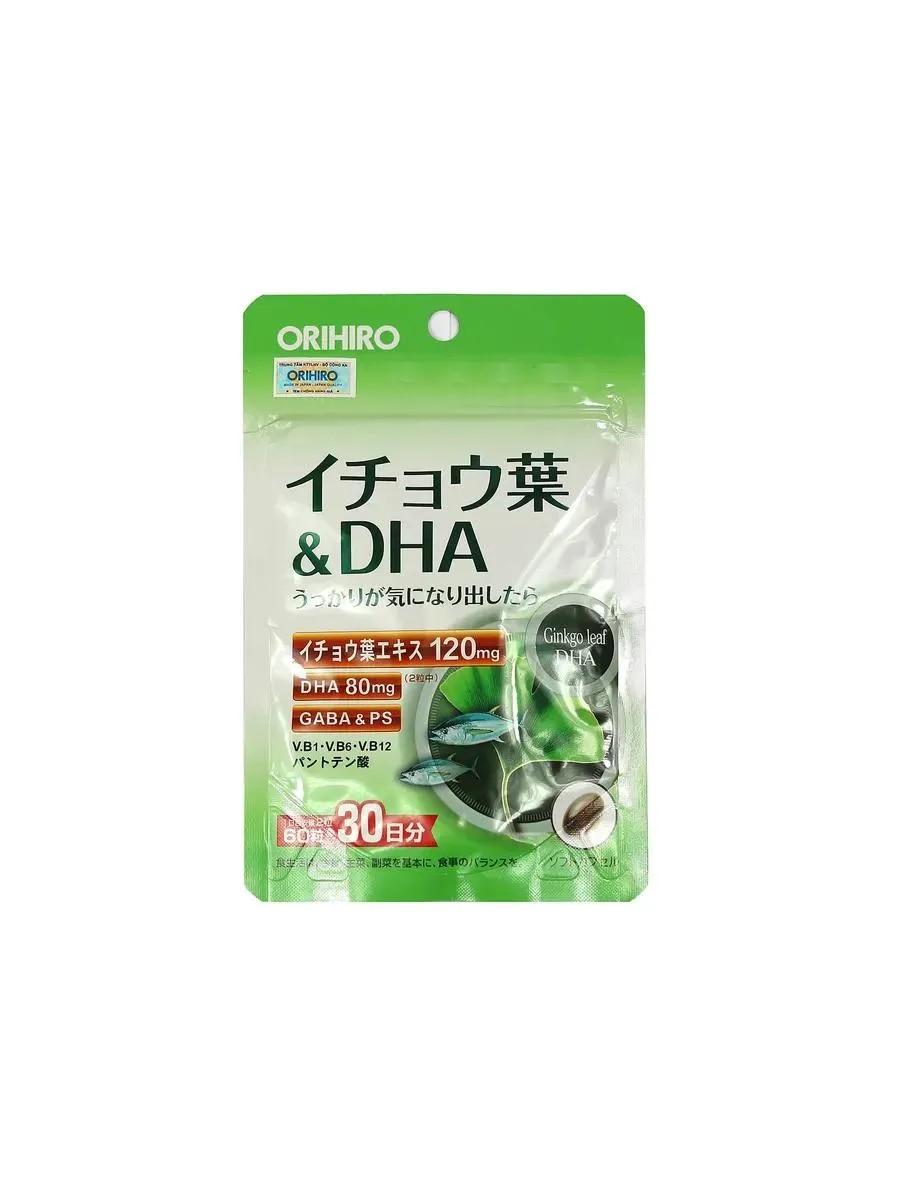 ORIHIRO Ginkgo Biloba Extract and DHA (Omega) to Improve Cerebral Circulation. Ginkgo biloba extract enhances microcirculation throughout the body and improves capillary blood flow. It oxygenates the heart, brain, and extremities. It stimulates memory and mental performance. Combined with Omega-3, ginkgo biloba reduces the risk of heart attacks, lowers cholesterol, prevents premature aging, has a sedative effect, and helps with dizziness, headaches, and hearing loss. Take 2 tablets once daily before or during meals with plenty of water. 1-2 times a year for 2-3 months. Contraindications: hypersensitivity to any of the ingredients.