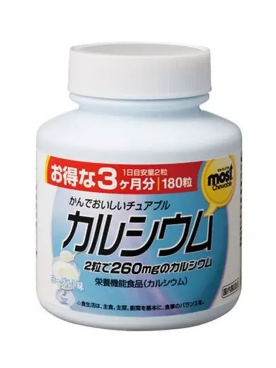 Orihiro Most Calcium and Vitamin D Yogurt Flavor 180 Tablets. This comprehensive Japanese supplement combines two essential ingredients: calcium and vitamin D. It will help strengthen your bones and teeth, normalize blood clotting and myocardial function, and improve overall health. These substances are essential for both adults and children for the proper functioning of the entire body. The product is available in chewable tablets with a pleasant yogurt flavor, so everyone is sure to love it. This Japanese supplement contains two active ingredients: calcium and vitamin D. Children, the elderly, pregnant women, and nursing mothers especially need them. These substances are essential for the human body to function as follows: bone strength; participation in the synthesis of certain hormones; normalization of nerve impulse transmission, proper muscle contraction; stable myocardial function, normalization of blood pressure; normal blood clotting; strengthening tooth enamel; restoring an attractive appearance to the skin; Strengthening the immune system, reducing the risk of infections; reducing the risk of osteoporosis and cancer. The human body needs vitamin D and calcium daily. To meet these needs, you should carefully plan your diet or simply take a Japanese vitamin containing these elements. The following people should definitely take vitamin D and calcium in the form of tasty chewable tablets: women with reduced estrogen levels in the blood - a hormone deficiency leads to accelerated destruction of bone structures; poor nutrition, a deficiency of trace elements and vitamins in the diet; early fading of sexual function (menopause); permanent residence in an area with cloudy weather, which leads to reduced production of vitamin D in cells; taking medications that deplete calcium from the body; drinking coffee, tea in large quantities, smoking. Directions: Chew 2 tablets thoroughly daily. Ingredients (2 tablets): calcium 260 mg, vitamin D 5 mg, maltose, glucose, sucrose, sweetener.