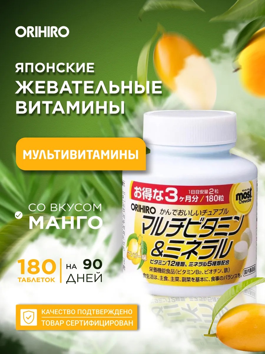 ORIHIRO MOST жевательные мультивитамины и минералы со вкусом манго, 180 штук на 90 дней.