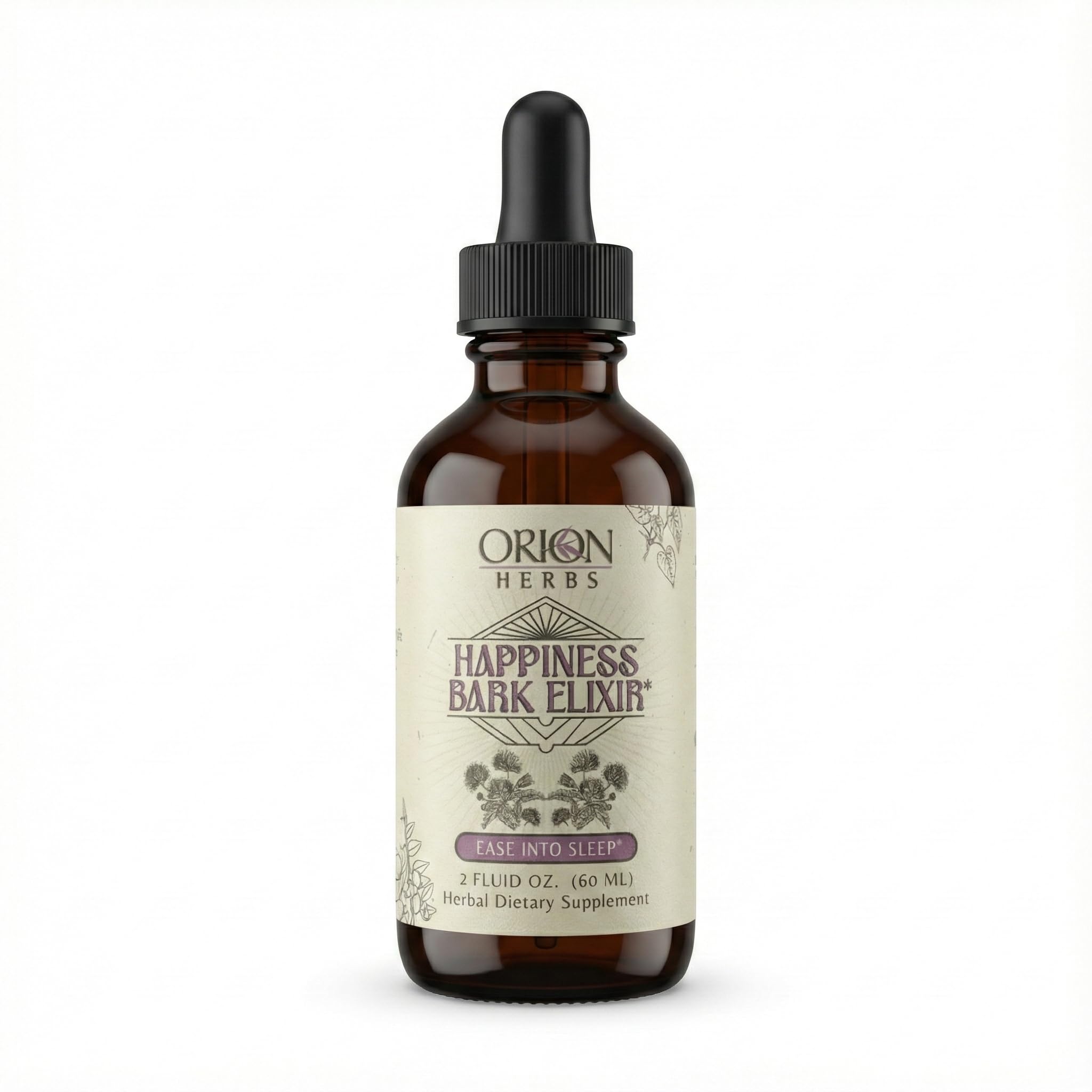 ORION HERBS Happiness Bark Elixir - Nighttime Calm Emotional Balance & Sleep Support with Albizia Zizyphus & Curcuma - Sleep Supplement Liquid Drops - Herbal Relaxation Drops USA Made (2oz)