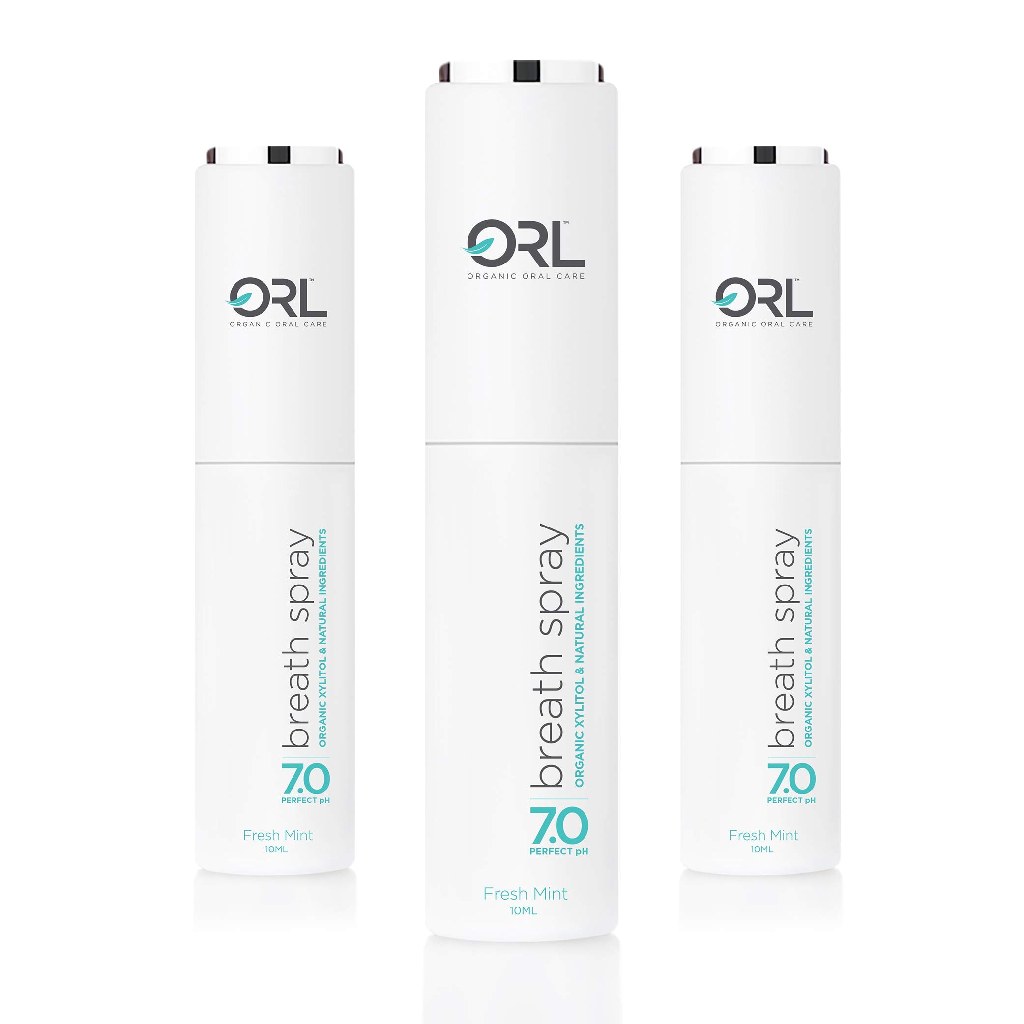 ORL Natural Breath Freshener Spray Fresh Mint 3 Pack Made in The USA Organic Xylitol Natural Fresh Breath Plant-Based Essential Oils Elevated Twist Top Alcohol-Free Fluoride-Free pH Balanced