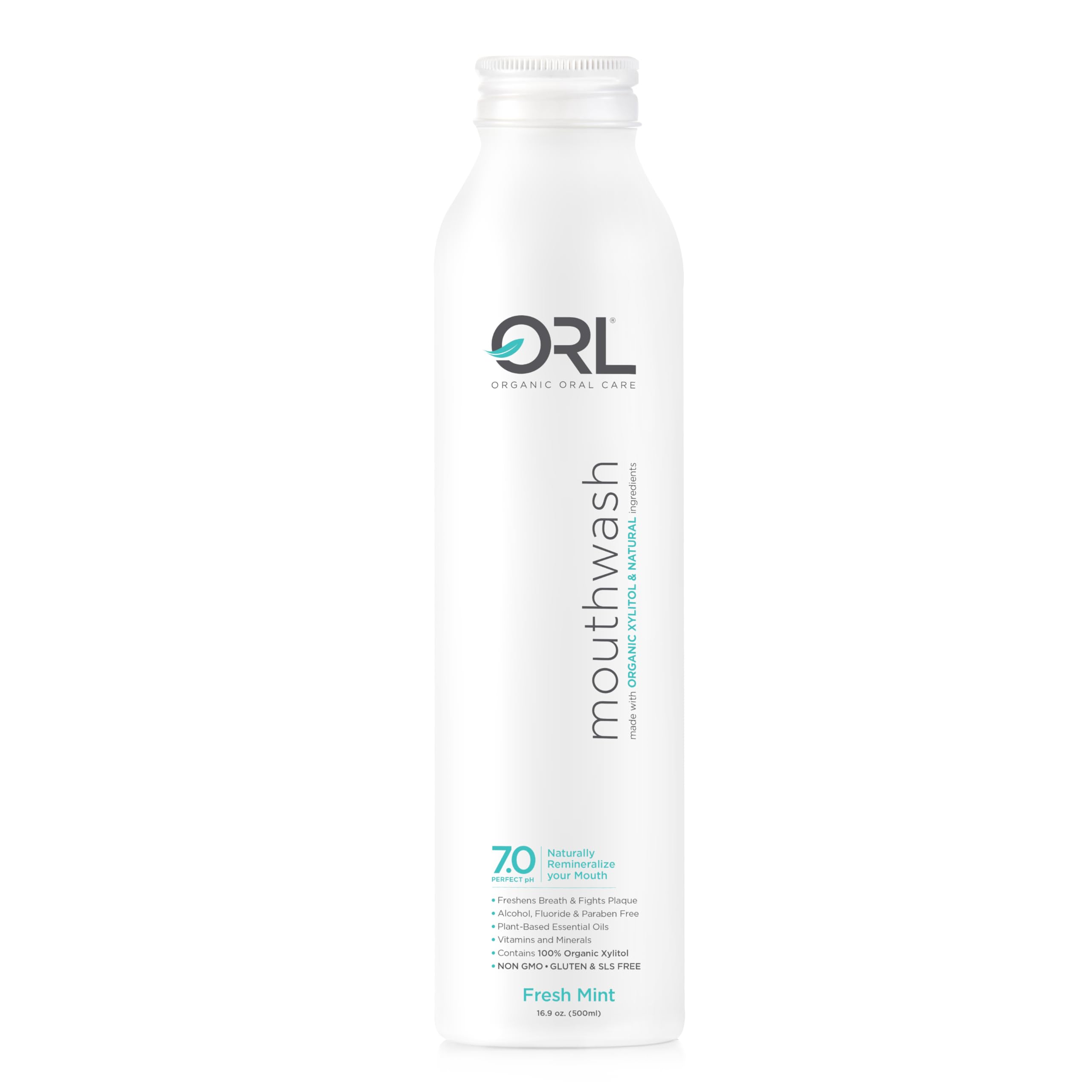 ORL Natural & Organic Alcohol-Free Mouthwash Uniquely Formulated to Clean Your Mouth Whiten Your Teeth Strengthen Tooth Enamel with 7.0 pH Balance. Eco-Friendly Aluminum Bottle. 16.9 oz. Fresh Mint