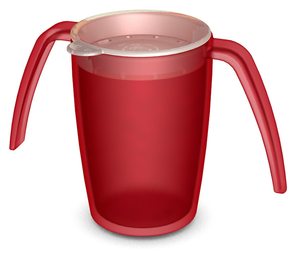 Ornamin 816 2-handle mug 220 ml with 814 drinking lid (ø 70 mm), all-round openings The set consists of the components - also available separately - 2-handle mug 220 ml (model 816) and drinking lid (ø 70 mm), all-round openings (model 814). The ORNAMIN mug combines a secure hold with an unobtrusive drinking aid that prevents swallowing or spilling. Both parts are dishwasher-safe and microwave-safe. Firm hold despite shaking. With its two handles, the ORNAMIN mug offers safe and stable handling. It provides extra grip in the event of strong shaking, such as a tremor, and the scale on the inside of the mug makes quick and easy content checks possible. This means that you can check with just a quick glance whether the amount of liquid you have consumed is sufficient or whether you need to drink more. Independence when drinking. Being able to drink independently again despite a handicap not only promotes the independence of the person affected, but also self-esteem. Weighing just 60 g, the ergonomic plastic cup is also a real featherweight. Thanks to the break-resistant material, the cup stays intact if it should fall to the floor. Colors for individual stations and at home. Whether in care or at home: Available in five different colors, the cup not only makes time at the table more colorful, it can also be perfectly assigned to individual stations or people. No swallowing, no burning. The drinking attachment with openings all around allows drinking from all sides and is therefore intuitive to use. It is also designed in such a way that - unlike spout attachments - it disappears inside the cup and is therefore hardly noticeable as a drinking aid. In addition, this drinking lid reduces the risk of choking because, in comparison to the spout attachment, the swallowing reflex is triggered when it comes into contact with the lip - similar to drinking without a drinking lid. In addition, you can feel the temperature of the drink with your lips and you don't burn your tongue or throat as easily as with a sippy cup. For straw lovers, there is a special opening in which the straw can be clamped - a real everyday help all round. By the way: In summer, the drinking lid offers the perfect insect repellent. The ORNAMIN guarantee The guarantee is valid for 30 years from the time of purchase for all manufacturing defects that the respective ORNAMIN product already had at the time of purchase. The complete guarantee declaration can be found at https://www.ornamin.com/shop/die-ornamin-garantie. Care instructions. Please do not use pointed or sharp-edged objects such as knives or steel sponges to clean the ORNAMIN tableware, as these will damage the refined surface. The use of aggressive cleaning agents such as scouring cream should also be avoided. Accessories such as the anti-slip ring and handle cushions are dishwasher-safe and can remain in the item during the washing process or be cleaned separately. For dishes with a thermal function, leave the closures (handle cushions) on the plate or bowl when cleaning in the dishwasher and only remove them after washing to dry the interior. Ornamin - The family tableware. Wherever people come together, family begins - whether at the dining table at home, in company production or in the cafeteria. Of course, everyone is part of the family - whether big, small, old, young, with a handicap or not, no one should be left out or excluded. That is why Ornamin develops and produces useful functional and everyday tableware for the whole family with its family tableware in a universal design that helps people and protects nature in the long term. Ornamin only uses certified raw materials that are approved for contact with food to manufacture the family tableware. Ornamin uses these raw materials to manufacture plastic products, e.g. melamine. Compared to porcelain or glass, melamine is quieter, lighter and less likely to break - a huge advantage in large families and large kitchens. Highest quality made in Germany. Matching products: Ornamin 207 mug with drinking trick 140 ml Ornamin 805 care mug 220 ml Ornamin 815 2-handle mug with drinking trick 140 ml Ornamin 900 cutting board Ornamin 901 plate with tilting trick Ø 26 cm Ornamin 902 plate with tilting trick Ø 20 cm Ornamin 903 bowl with tilting trick Ø 15 cm Ornamin 905 mug with drinking trick 140 ml Product details. 2-handle mug Model: 816 Diameter: 71 mm Capacity: 220 ml Weight: 60 g Material: PP (bisphenol-A-free) Drinking lid (ø 70 mm), openings all around Model: 814 Diameter: 70 mm Weight: 12 g Material: PP (bisphenol-A-free) More from Ornamin, as well as all information on use and care instructions, can be found in the Ornamin store on . SET CONTAINS: 1x Ornamin 816 2-handle mug 1x Ornamin 814 drinking lid High-quality plastic in ORNAMIN quality, Made in Germany. The drinking cup made of break-resistant quality plastic is durable, bisphenol-A-free (BPA-free), dishwasher-safe and microwave-safe. Practical everyday helper for seniors, in care, for illnesses such as stroke, Alzheimer's, dementia, multiple sclerosis, Parkinson's and for people with swallowing disorders / dysphagia. Extra support in case of severe shaking thanks to two handles, quick content control thanks to integrated scale. Replaces the classic spout attachment: unobtrusive drinking attachment that disappears discreetly into the cup, all-round openings allow drinking from all sides. Ornamin 816 2-Henkel-Becher 220 ml mit 814 Trinkdeckel (ø 70 mm), rundum gehende Öffnungen Das Set besteht aus den - auch separat erhältlichen - Komponenten 2-Henkel-Becher 220 ml (Modell 816) und Trinkdeckel (ø 70 mm), rundum gehende Öffnungen (Modell 814). Der ORNAMIN Becher kombiniert sicheren Halt mit einer unauffälligen Trinkhilfe, die Verschlucken oder Überschwappen vermeidet. Beide Teile sind spülmaschinenfest und mikrowellengeeignet. Fester Halt trotz Zittern. Durch seine zwei Henkel bietet der Henkelbecher von ORNAMIN sichere und stabile Handhabung. 