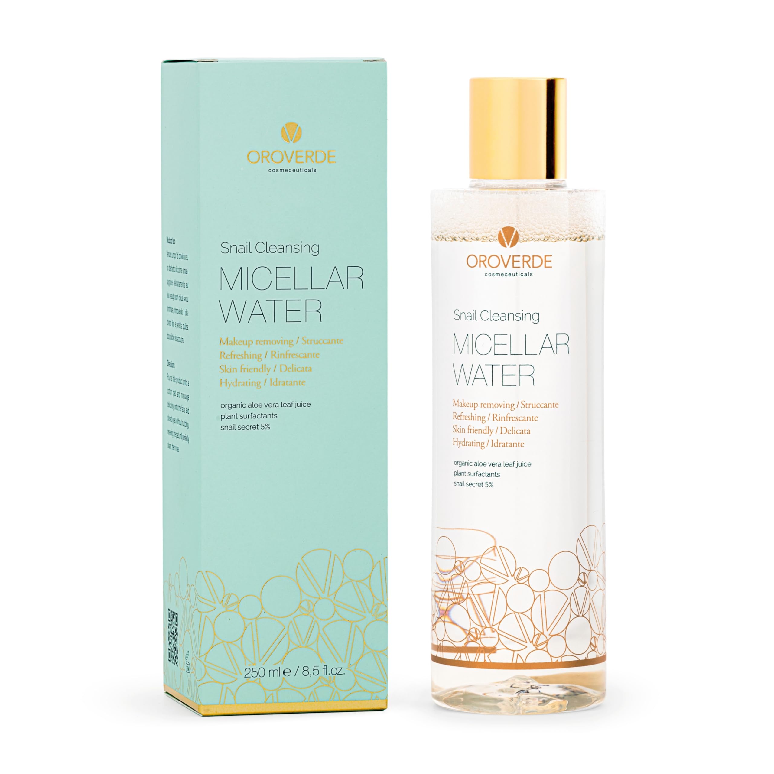 OROVERDE OROVERDE Micellar Cleansing Water 250ml Refreshing water with snail mucin Facial skincare products for men and women