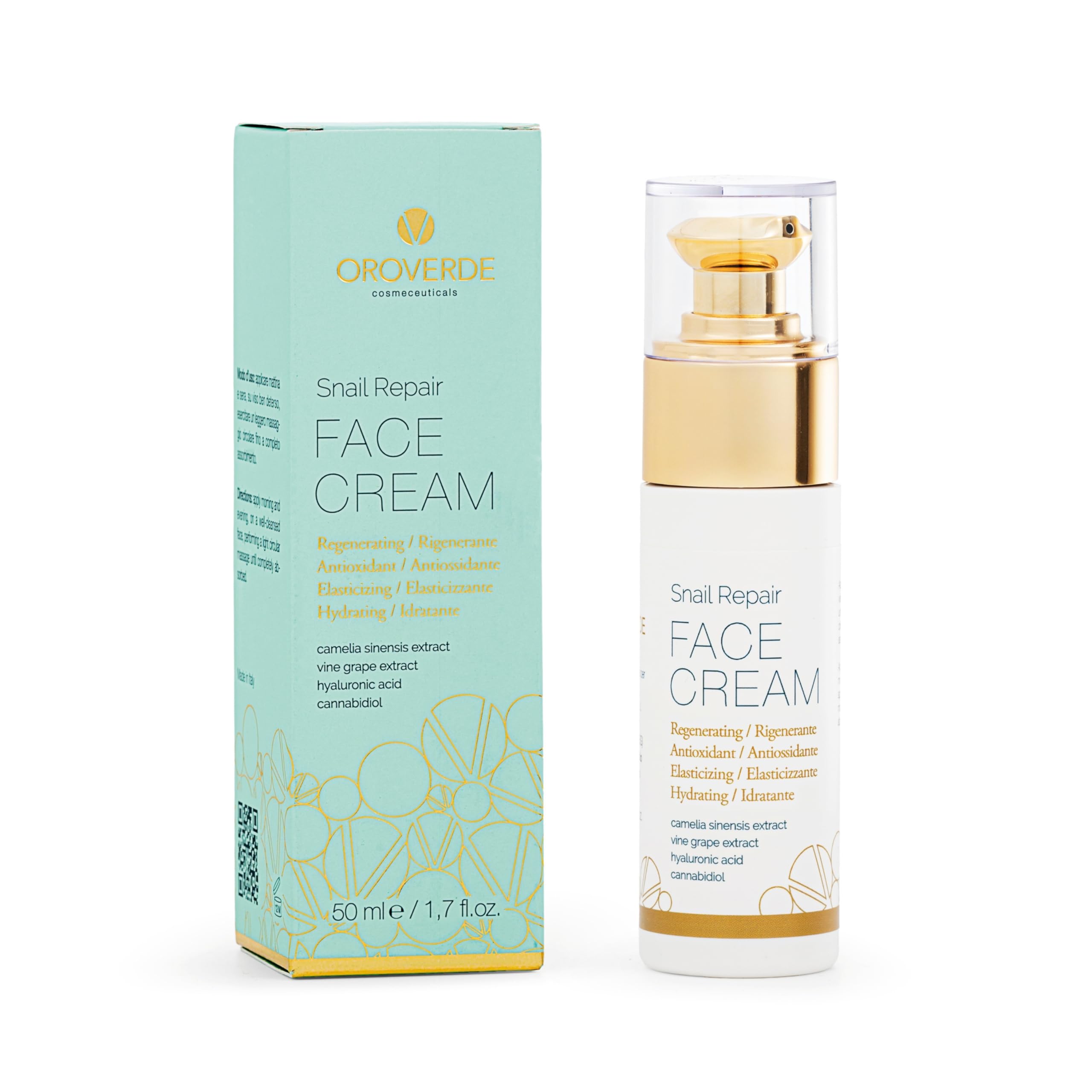 OROVERDE OROVERDE Repairing Face Cream with 65% Snail Slime 50ml - Moisturizing and Regenerating with Hyaluronic Acid Centella and Vitamins B3-B5 - Elastic and Protective for Radiant Skin