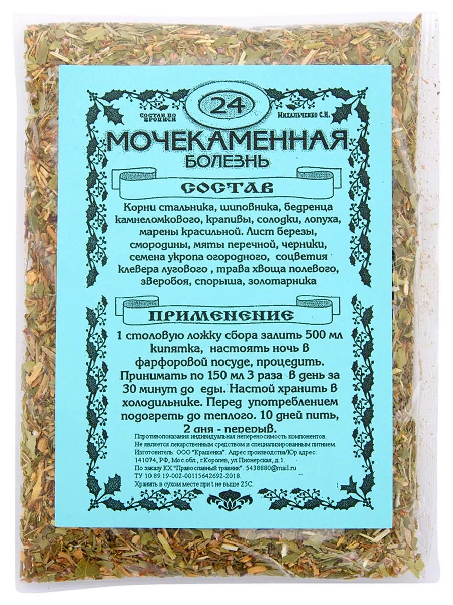 Монастырский чай травяной сбор №24 Мочекаменная болезнь100 гр. по прописи МИХАЛЬЧЕНКО С.И КХ Православный травник.
