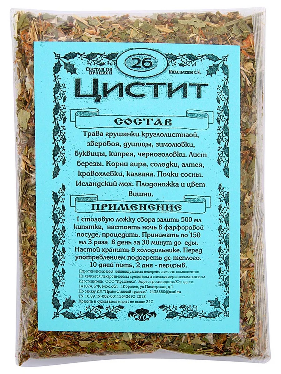 Монастырский чай травяной сбор №26 Цистит 100 гр. по прописи МИХАЛЬЧЕНКО С.И КХ Православный травник.