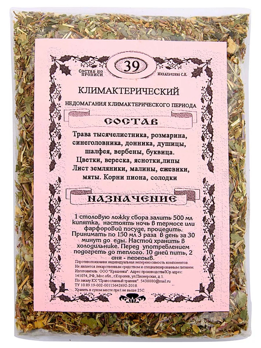 Монастырский чай травяной сбор №39 Климактерический 100 гр. по прописи МИХАЛЬЧЕНКО С.И КХ Православный травник.