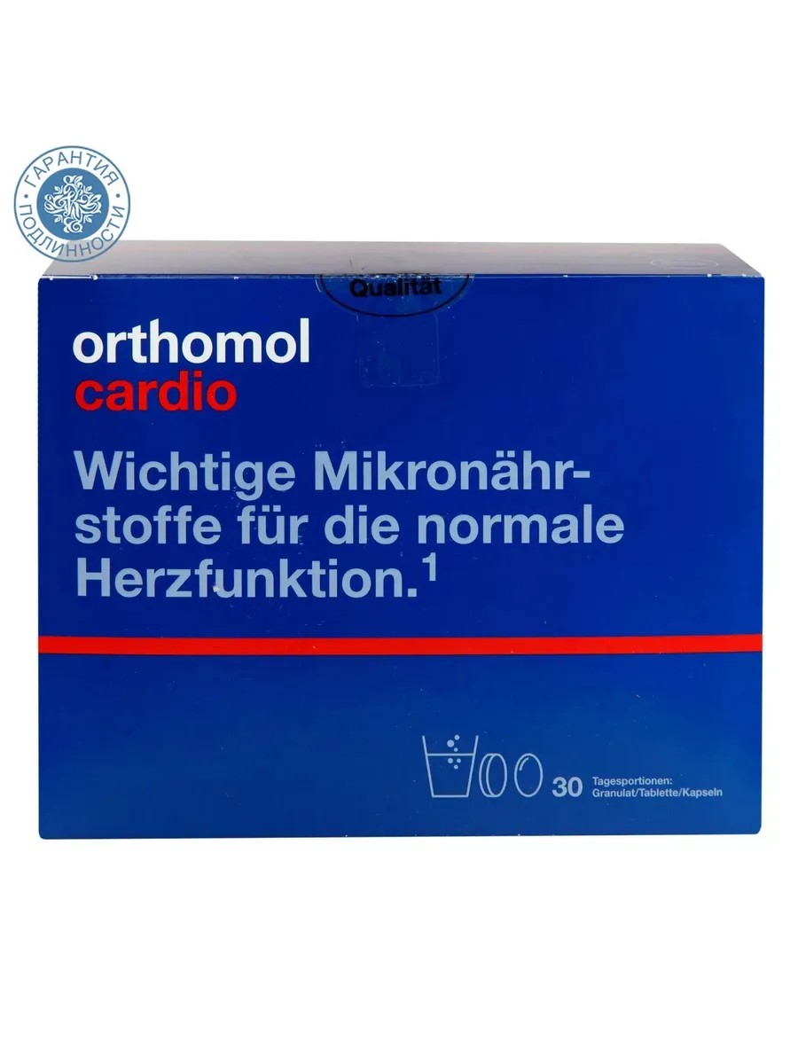 Поддержание здоровья сердечно-сосудистой системы имеет первостепенное значение. Вы можете эффективно поддерживать его своим образом жизни. Orthomol Cardio подходит для всех людей, которые хотят дополнить свой рацион микронутриентами, чтобы способствовать нормальной работе сердца и сосудов. Чередование достаточного количества упражнений и фаз расслабления делает сердце сильным для повседневной жизни. Всего 30 минут быстрой ходьбы или езды на велосипеде в день может быть достаточно. Отказ от никотина и чрезмерное употребление алкоголя также заставляет сердце биться чаще. Кроме того, различные микроэлементы способствуют нормальной работе сердца. Ортомол Кардио является пищевой добавкой. Важные микроэлементы для нормальной работы сердца. С омега-3 жирными кислотами EPA и DHA и витамином B 1 (тиамин) в качестве вклада в нормальную работу сердца. С полифенолами какао. Порошок по 15 г, капсулы массой 840 мг, массой 1275 мг, таблетки массой 371 мг