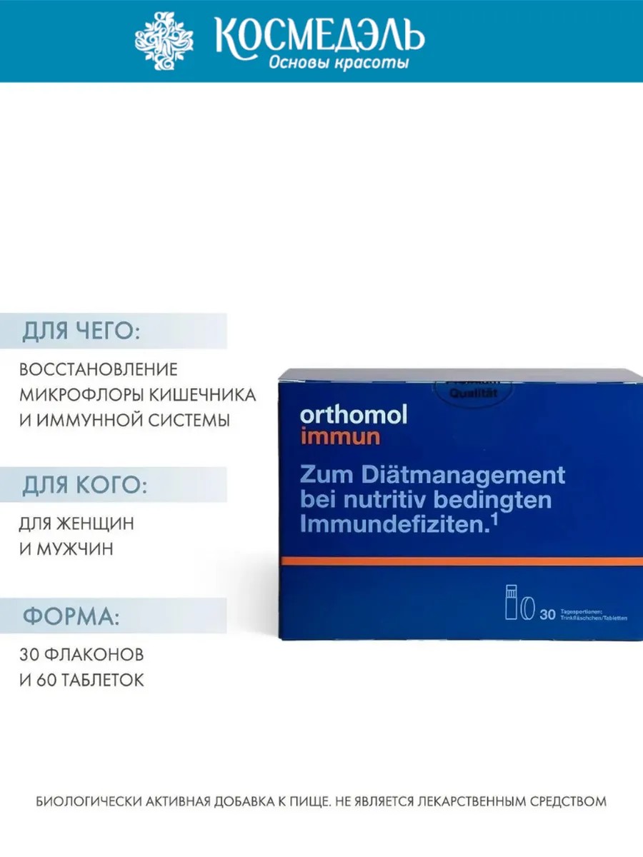 | Trade name | biologically active food supplement "Orthomol Immun" (Orthomol® Immun) (liquid in 20 ml vials, 450 mg tablets, 500 mg tablets) |