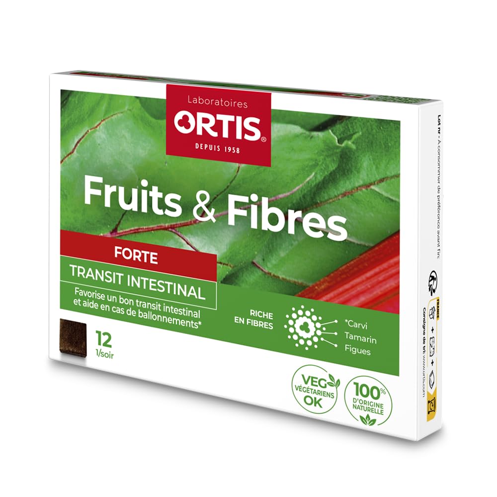 Occasional sluggish bowel movements can have various causes, including stress and diet. This is common for many people and can lead to discomfort. Fruits Fibres FORTE is a unique solution designed to quickly rebalance intestinal transit thanks to a synergy of plants highly and precisely concentrated in active ingredients. Standardized Tibetan rhubarb extract rapidly regulates intestinal transit through an optimal balance of hydration and stimulation. Tamarind, fig, guar, dates, and prunes promote regularity and contribute to good intestinal health through a bulking effect that triggers the bowel reflex. Caraway, known for its digestive health benefits, helps with bloating by promoting gas elimination and is useful for abdominal tension often associated with occasional sluggish bowels. INGREDIENTS Figs (Ficus carica L. – 7.36 g cube), wheat syrup (gluten-free), guar gum (Cyamopsis tetragonoloba (L.) Taub. – 450 mg cube), tamarind pulp concentrate (Tamarindus indica L. – 400 mg cube), dry rhubarb extract standardized to rhein (Rheum palmatum L. Rheum officinale Baill., wheat syrup (gluten-free) – 380 mg cube) date concentrate (Phoenix dactylifera L. – 200 mg cube) prune concentrate (Prunus domestica L. - 200 mg cube) humectant: glycerin dry extract of caraway (Carum carvi L. – 50 mg cube) thickener: acacia gum. DIRECTIONS FOR USE Store preferably at a temperature of 15 to 25 C in a dark, dry place. SAFETY WARNING Do not give to children under 12 years of age. Consult your doctor if pregnant or breastfeeding. Do not use for extended periods without consulting a healthcare professional. It is advisable not to exceed the recommended daily intake. Food supplements should not be used as a substitute for a varied and balanced diet and a healthy lifestyle. Keep out of reach of young children. Suitable for vegetarians. The color, odor, and taste of this product may vary without affecting its quality and effectiveness. This is due to the natural character of the ingredients. See moreOrder the Ortis fruits fibres forte transit intestinal 12 chewable cubes online at the best price and get it delivered to your home in 48 hours.Ortis fruits fibres forte transit intestinal 12 cubes à mâcher Naturelle 12 unité (Lot de 1)DESCRIPTION DU PRODUIT DESCRIPTION DU PRODUIT Un transit ralenti de manière occasionnelle peut trouver son origine à différents niveaux le stress, l'alimentation,… Il est fréquent pour de nombreuses personnes et entraîne certains inconforts. Fruits Fibres FORTE est une solution unique qui vise à rééquilibrer le transit intestinal rapidement grâce à une synergie de plantes hautement et justement concentrées en principes actifs. L'extrait standardisé de rhubarbe du Tibet régularise le transit intestinal rapidement grâce à un équilibre optimal entre hydratation et stimulation. Le tamarin, la figue le guar, les dattes et les pruneaux favorisent le transit et contribuent à une bonne santé intestinale par un effet de lest qui déclenche le réflexe intestinal. Le carvi, reconnu pour ses propriétés en santé digestive, aide en cas de ballonnements en favorisant l'élimination des gaz, et est utile en présence de tensions abdominales souvent associées à la paresse intestinale occasionnelle. INGRÉDIENTS Figues (Ficus carica L. – 7,36 g cube), sirop de blé (sans gluten), gomme de guar (Cyamopsis tetragonoloba (L.) Taub. – 450 mg cube), concentré de pulpe de tamarin (Tamarindus indica L. – 400 mg cube), extrait sec de rhubarbe standardisé en rhéine (Rheum palmatum L. Rheum officinale Baill., sirop de blé (sans gluten) – 380 mg cube) concentré de dattes (Phoenix dactylifera L. – 200 mg cube) concentré de pruneaux (Prunus domestica L. - 200 mg cube) humectant: glycérine extrait sec de carvi (Carum carvi L. – 50 mg cube) épaississant: gomme d'acacia. MODE D'EMPLOI Conserver de préférence à une température de 15 à 25 C dans un endroit sombre et sec. AVERTISSEMENT DE SÉCURITÉ Ne pas administrer aux enfants de moins de 12 ans. Consultez votre médecin en cas de grossesse ou d'allaitement. Pas d'utilisation prolongée sans avis d'un spécialiste. Il est conseillé de ne pas dépasser la quantité journalière recommandée. Les compléments alimentaires ne peuvent être utilisés comme substitut d'un régime alimentaire varié, équilibré et d'un mode de vie sain. Tenir hors de portée des jeunes enfants. Convient aux végétariens. La couleur, l'odeur et le goût de ce produit peuvent varier sans en affecter sa qualité et son efficacité. Ceci est dû au caractère naturel des ingrédients. Voir plusCommandez l'article Ortis fruits fibres forte transit intestinal 12 cubes à mâcher en ligne au meilleur prix et faites-vous livrer à domicile en 48h.