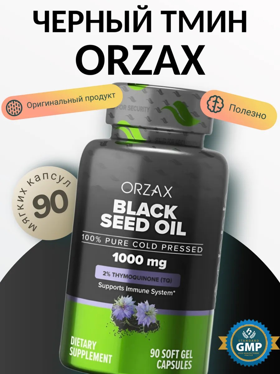 Масло черного тмина в капсулах Orzax содержит 1000 мг масла черного тмина холодного отжима и 2% тимохинона в каждой мягкой капсуле.