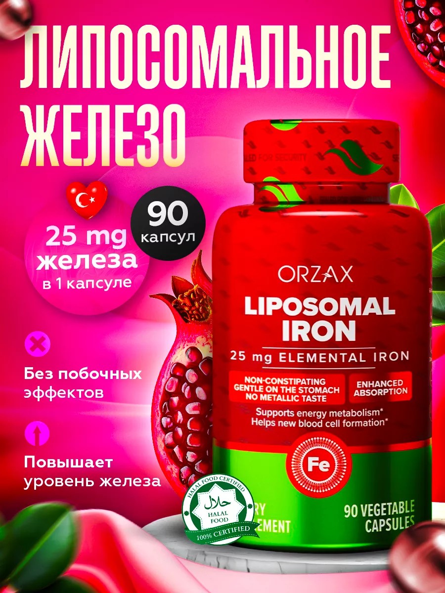 Orzax Liposomal Iron - высококачественные и эффективные бады, произведенные в Турции и разработанные специально для поддержки здоровья крови и повышения энергии у взрослых женщин, мужчин, пожилых и подростков. Препарат содержит железо в липосомальной форме, обладающей высокой биодоступностью и превосходной способностью усваиваться. Микроэлемент играет важную роль в процессе образования эритроцитов - красных кровяных клеток, несущих кислород по всему организму. При нехватке вещества, снижается уровень гемоглобина и развивается анемия, симптомы которой включают усталость, слабость, боли в голове и повышенную раздраженность. Бад участвует в работе иммунитета, помогая ему бороться с инфекциями, простудами и вирусами. Продукт укрепляет сердечно-сосудистую систему, прибавляет бодрости и поддерживает кровеносные сосуды. Снижает риск возникновения различных заболеваний, связанных с сердцем. Витамин полезен для женской, мужской и детской аудитории. Беременным девушкам, кормящим грудью мамам и детям, перед началом приема комплексных капсул, следует проконсультироваться с врачом. Благодаря удобному выпуску пищевой добавки хелатное от турецкого бренда Орзакс, таблетки можно принимать где угодно. При добавлении витаминного комплекса в рацион питания, любой человек будет чувствовать себя бодрым, энергичным и сильным. Это особенно нужно для людей, ведущих спортивный образ жизни. Средство не является лекарством. Начните заботиться о самочувствие уже сейчас. Заказывайте мультивитамин хелат и наслаждайтесь прекрасными результатами!