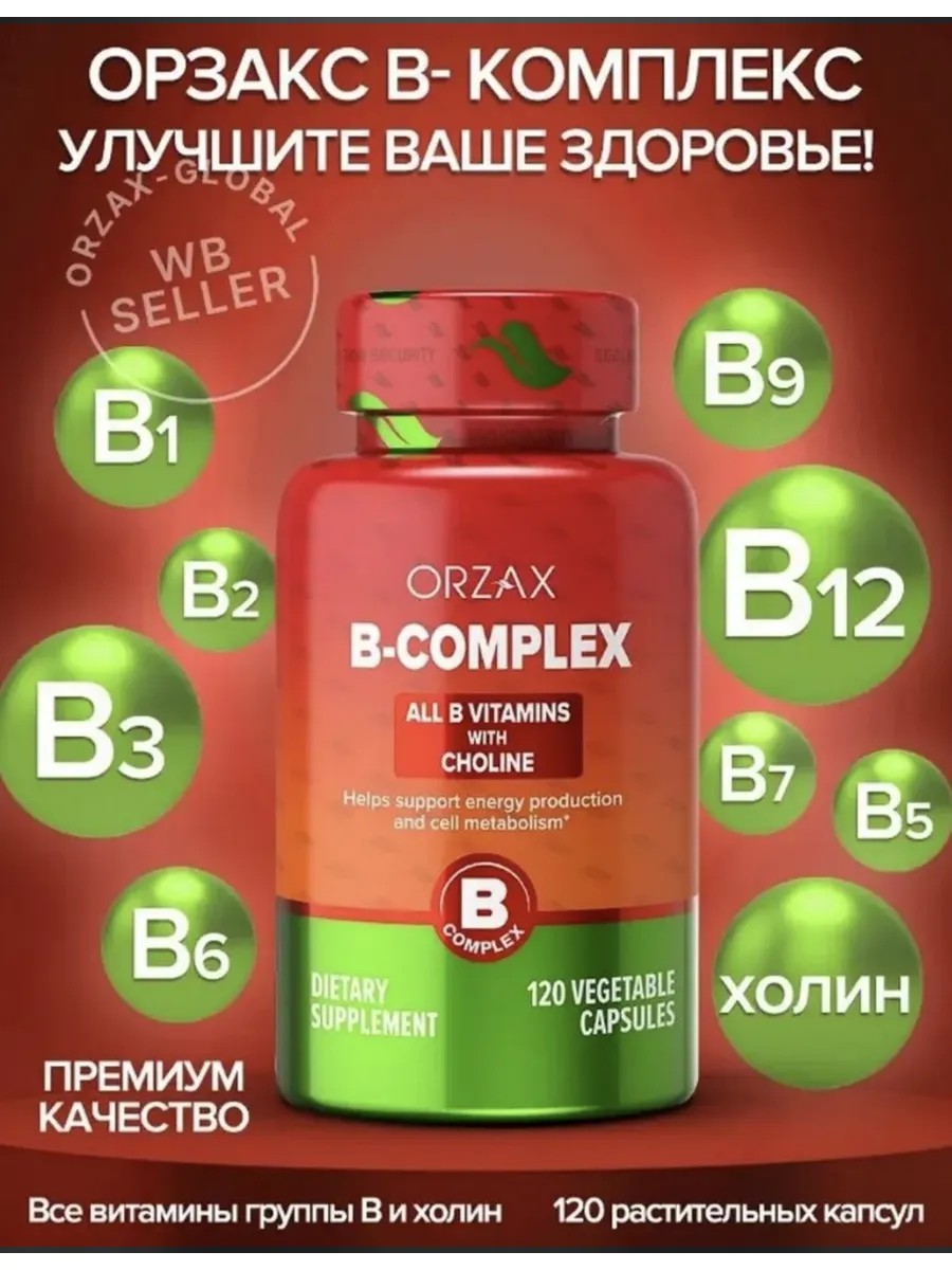 Комплекс витаминов группы В.В complex - это дозированные витамины B1, B2, B3, B5, B6, B7, B12. В составе также фолиевая кислота, холин и инозитол. Тиамин, или витамин B1, способствует нормальному энергетическому обмену, необходимо для нормального роста и развития и помогает поддерживать работу сердца, нервной и пищеварительной систем. Рибофлавин, или витамин B2, способствует уменьшению усталости и истощения организма. Ниацин, витамин B3, необходим для укрепления защитных свойств кожи. Также витамин B6 способствует нормальному метаболизму белков и гликогена. Витамин B12 способствует нормальному метаболизму гомоцистеина. Холин поддерживает нормальную функцию печени.