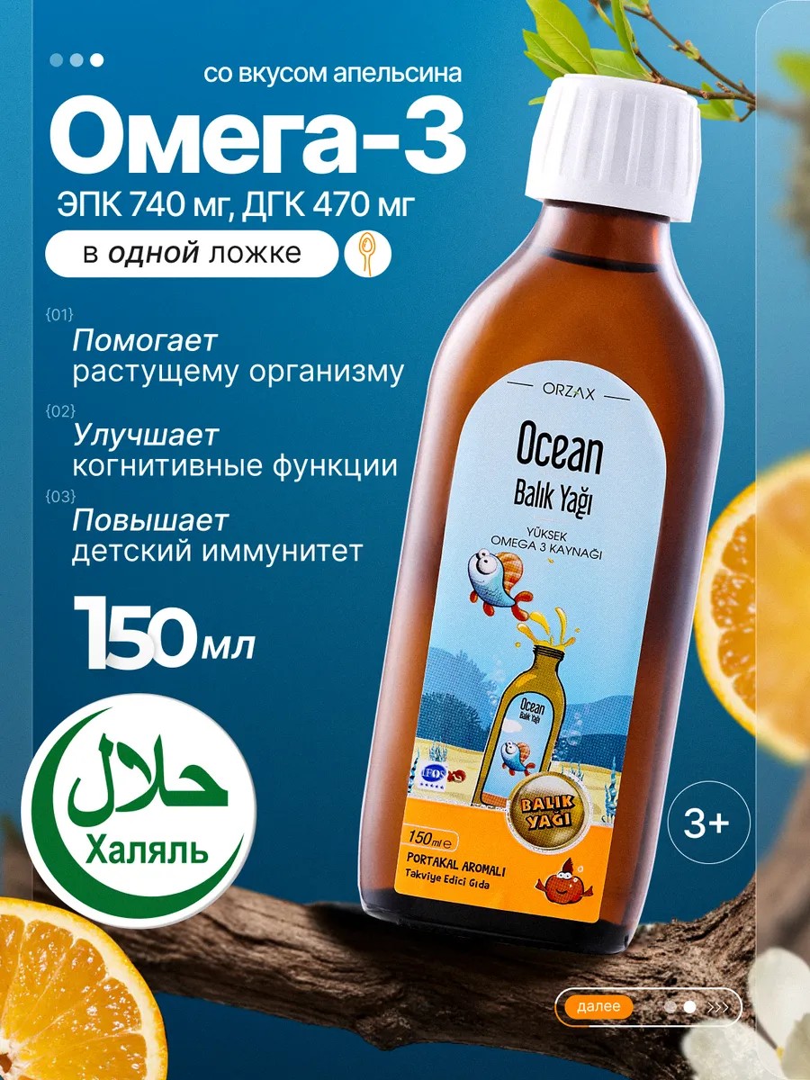 Способствует здоровому энергетическому обмену и повышению способности печени реагировать на проблемы питания. Прием Орзакс для детей Омега-3 помогает здоровому развитию ребенка, укрепляет иммунитет, участвует в развитии нервной системы, мозга, зрения ребенка, повышает внимание и сообразительность. Препарат не содержит витаминов A и D, поэтому его безопасно использовать без перерыва на летний сезон. В ассортименте представлены вкусы апельсина, лимона или тутти-фрутти. Каждый продукт Ocean Fish Oil проходит независимую проверку на содержание ГМО и превышает самые строгие международные стандарты чистоты и свежести. Выбирайте Омега сироп рыбий жир и обеспечьте своему ребенку здоровье и благополучие.