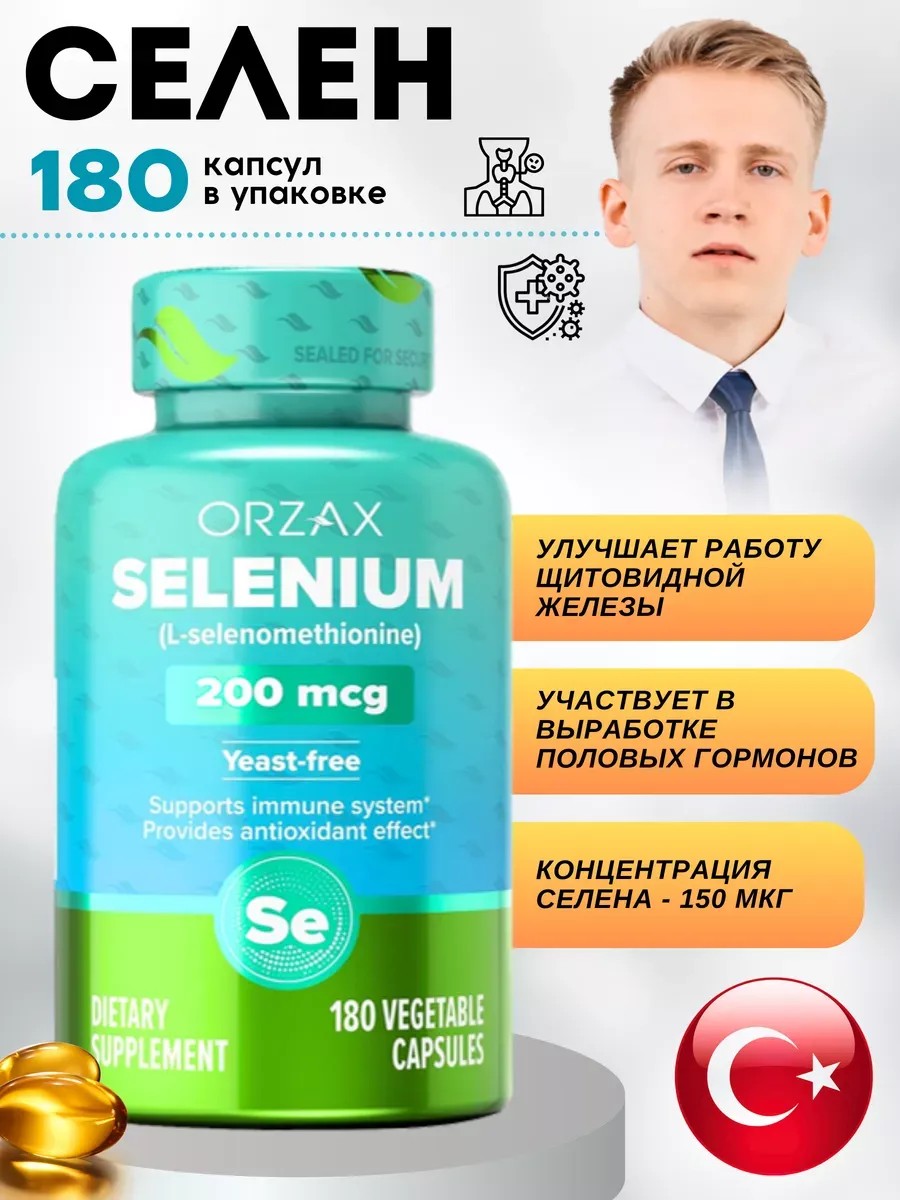 Селениум от Orzax (орзакс), это прекрасный выбор для тех, кто желает поддерживать свое здоровье и состояние на высоком уровне. Selen один из наиболее важных витаминов для нашего здоровья. Турецкий бренд Orzax за 17 лет успешной работы на рынке зарекомендовал себя как надежный и добросовестный производитель. Бренд изготавливает только высококачественные продукты, которые отвечают самым высоким стандартам качества. Вся выпускаемая продукция является кошерной и халяльной, проходит 3-этапный контроль качества и соответствует стандартами WHO, GMP, FDA, ISO, IFOS и GOED. Селенметионин – элемент, фундаментально влияющий на здоровье: иммунитет, продолжительность жизни, внешний вид, эмоциональное состояние, работа внутренних органов. Он играет ключевую роль в поддержке иммунной системы, избавляет от хронической усталости, апатии, нормализует гормональный баланс, улучшает работу щитовидной железы. Бад ocean селен 200 также помогает против выпадения волос и в борьбе с депрессией, улучшает работу сердечно сосудистой системы и повышает иммунитет. Витамины для улучшения памяти и настроения цинк селен отлично подходят для людей любого возраста и образа жизни. Дозировка продукта составляет 200 мг, что делает его идеальным источником этого важного витамина. Данный комплекс содержит наиболее усвояемую форму селен метионина. Комбинация цинкоселен, (цинк+селен), йодоселен (йод селен), магний цинк селен многократно усиливает действие двух элементов, оказывает мощную поддержку иммунной системы. Так же можно сочетать с витамином е, такая вариация особенно полезна, Е витамины для красоты кожи лица, волос, ногтей, костей. Органический селен имеет высокую концентрацию, быстро и эффективно усваивается организмом. Кроме того, витамины без глютена и не содержат ГМО, что делает их безопасными для людей с некоторыми видами аллергии. Селенометионин 100 и 50мкг рекомендуется для детей, селен 200 для взрослых мужчин и женщин, девушек, спортсменов и подростков, а также для тех, кто хочет улучшить своё самочувствие. Однако, необходимо помнить, что дозировка должна быть определена врачом. Если вы хотите оставаться здоровым и энергичным на протяжении всего дня, мультивитамины от Orzax (ocean), это именно то, что вам нужно. Рекомендуем проконсультироваться с врачом перед началом приема любых мужских и женских витаминных комплексов, минералов или пищевых добавок к питанию.